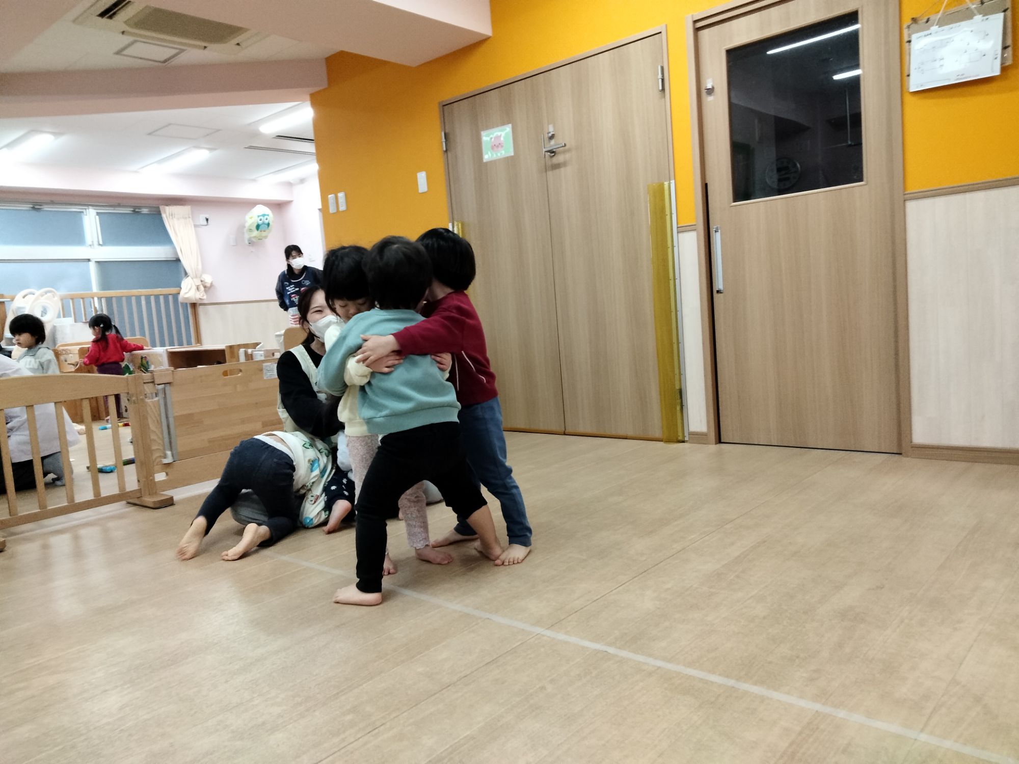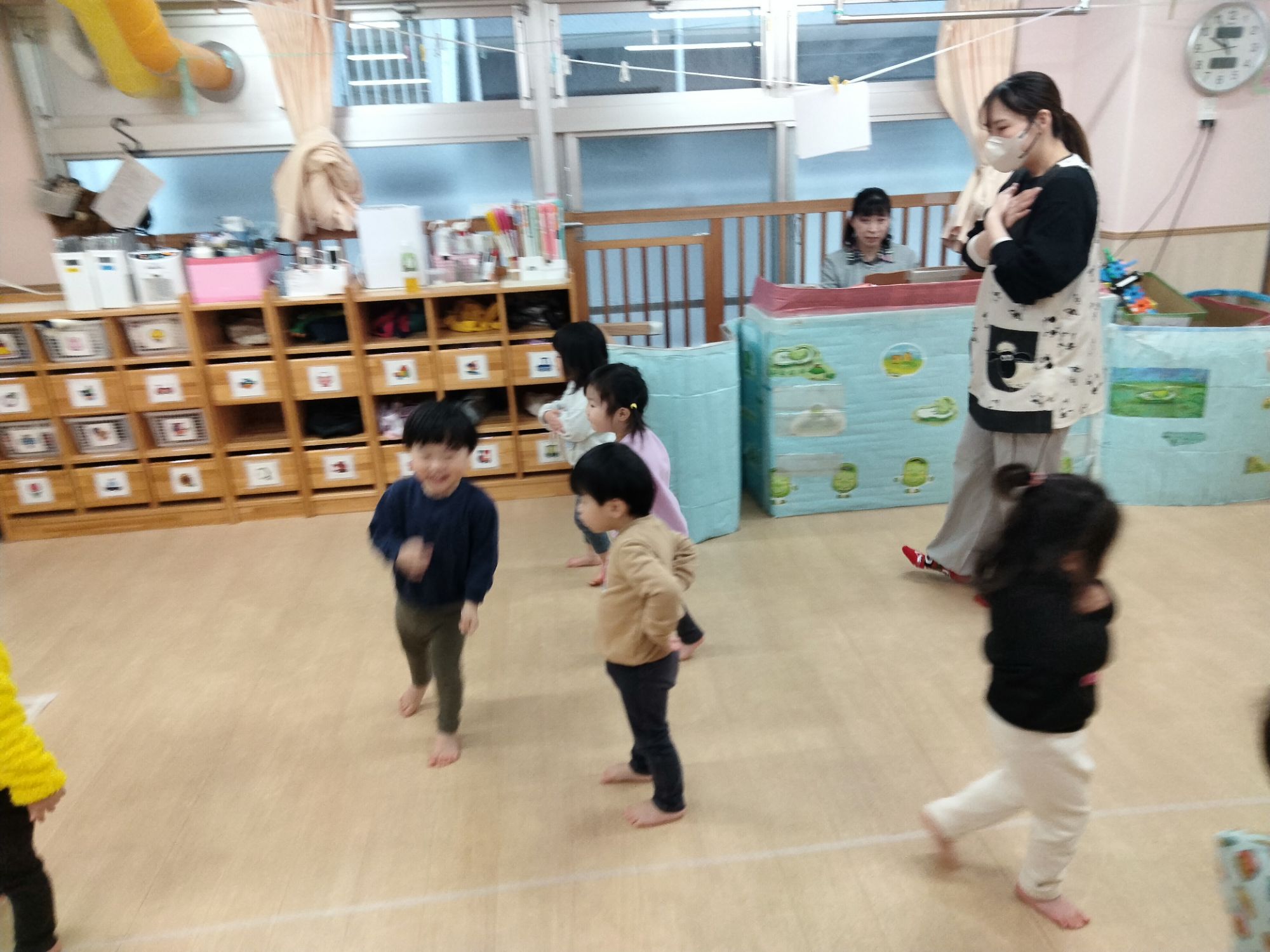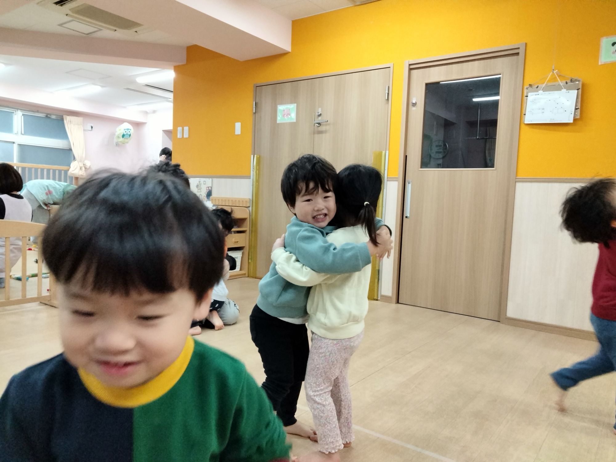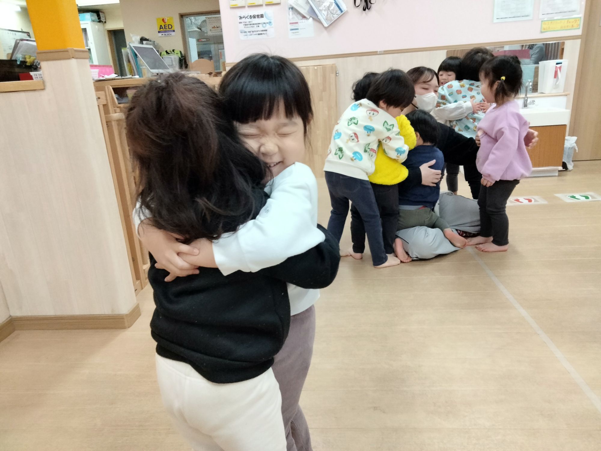 保育者とだけでなくお友だちとの仲もぎゅっと縮まっているにじ組さん!