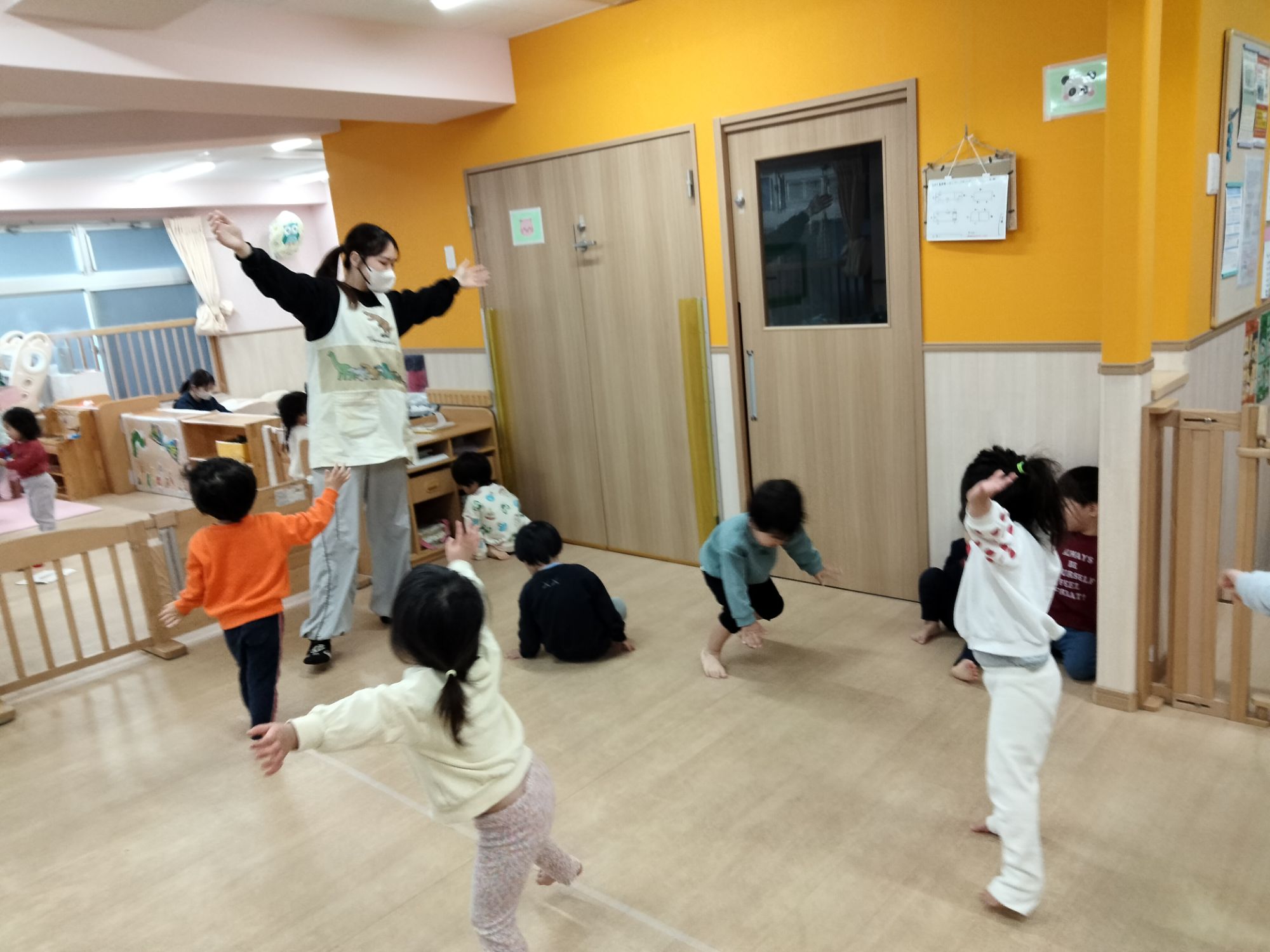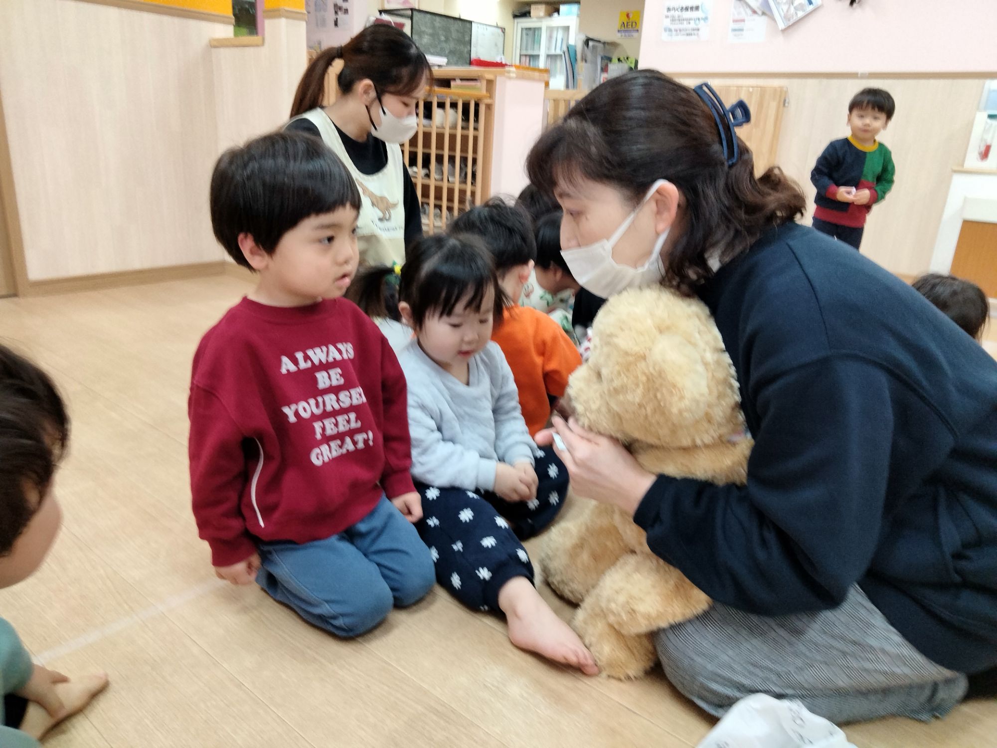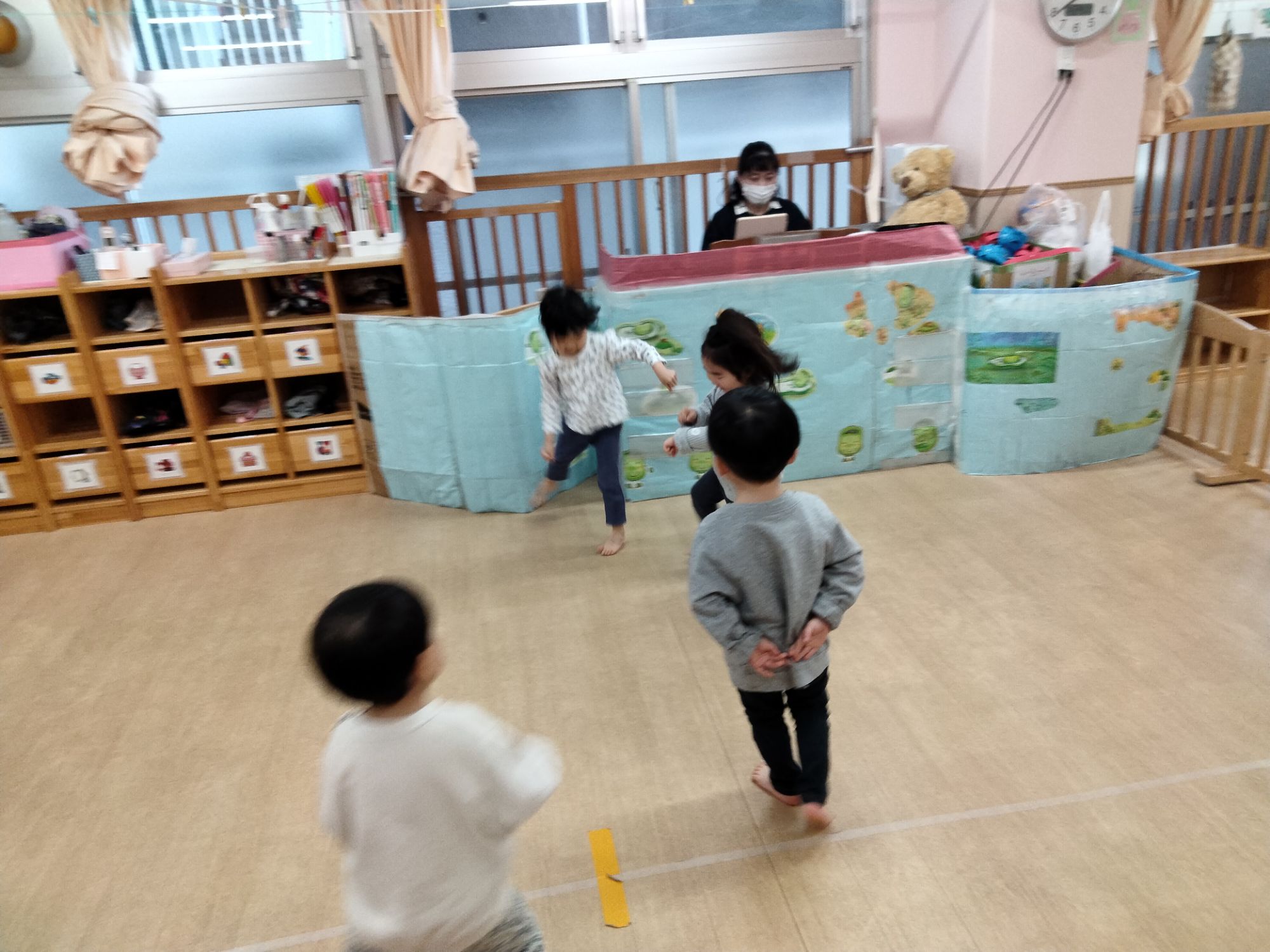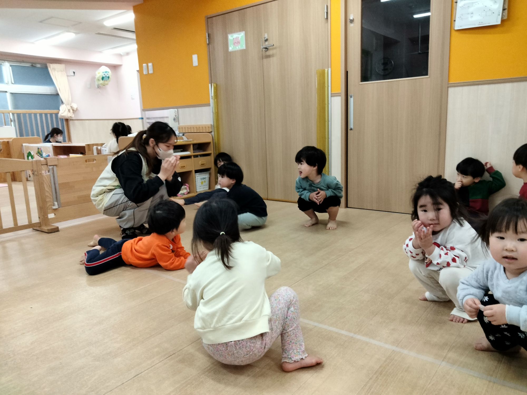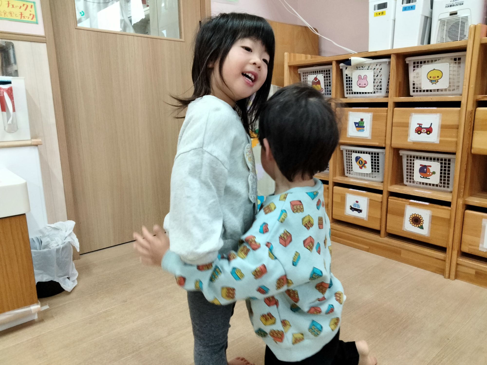 保育者とだけでなくお友だちとの仲もぎゅっと縮まっているにじ組さん!