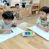 にじ組さんは、自分で皮をむいてみる経験もしました‼️力を込めてむこうとするお友達、慎重にチャレンジするお友達など、様々な姿が見られました。