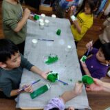 肩をぐるぐる~、筋肉ムキムキッ❗💪のポーズも真似をしながらたくさん笑っていました。