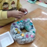 はじめに準備体操‼️両手をぎゅっと握り、手首をくるくる~っと回します。『おにぎり、パクッ!🍙😋✨』と言う先生の言葉に大笑い❗