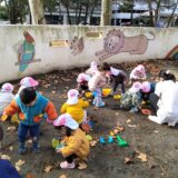 砂場でかけっこ!後ろ向きで歩いたり、カニさん歩きをしたり、お山の斜面を進んでみたり…。砂場でかけっこをすると、地面の感触とは異なるので走りやすい…走りにくいなどの場面で、体の動かし方も違ってきます。