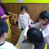 “ラーメン大好き ラーメン食べたい!🎶🍜✨”という歌詞を聞きながら、ニコニコで踊る子どもたち😄