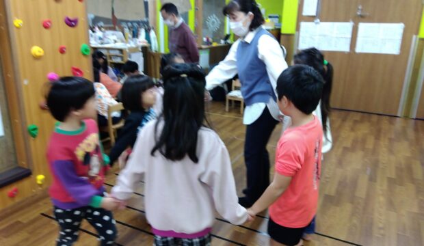 歩き続けそうになるところをぐっと堪えて止まる…子ども達にとっては難しい動作になります。しかし、繰り返すうちに少しずつできるようになってきました🌟✨