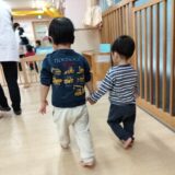お友達と手を繋いで左右に揺れたり一緒に歩いたりします。お友達とのスキンシップをとりながら、手を繋ぐ力加減を考えたり相手のことを考えながら動くことで、相手への優しい気持ちが育っていきます☺️✨
