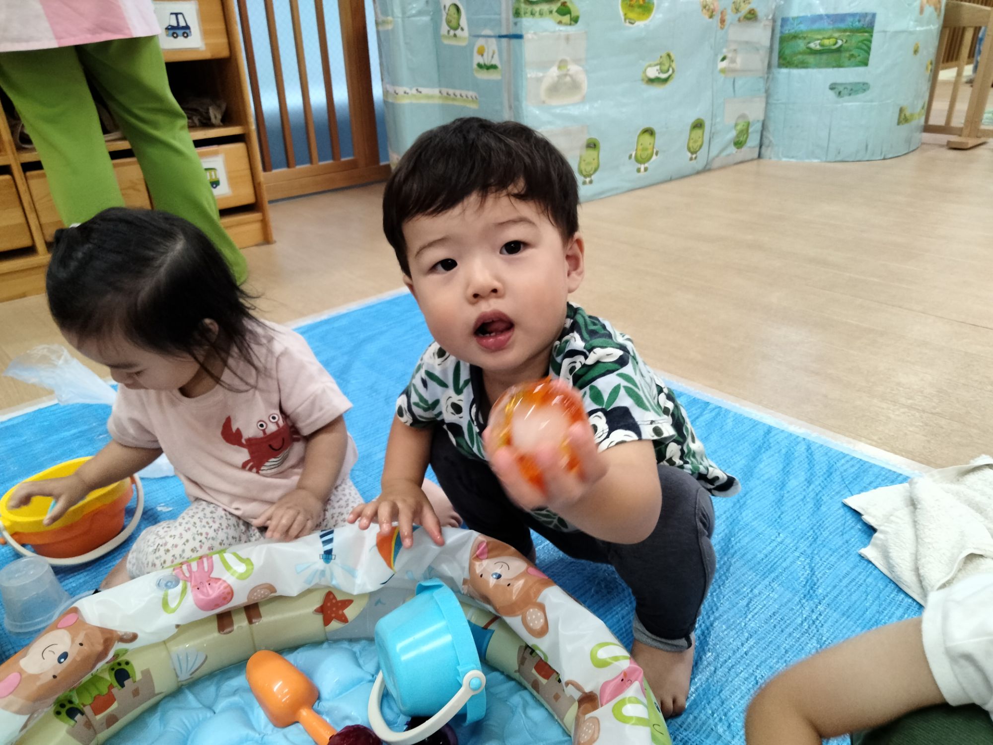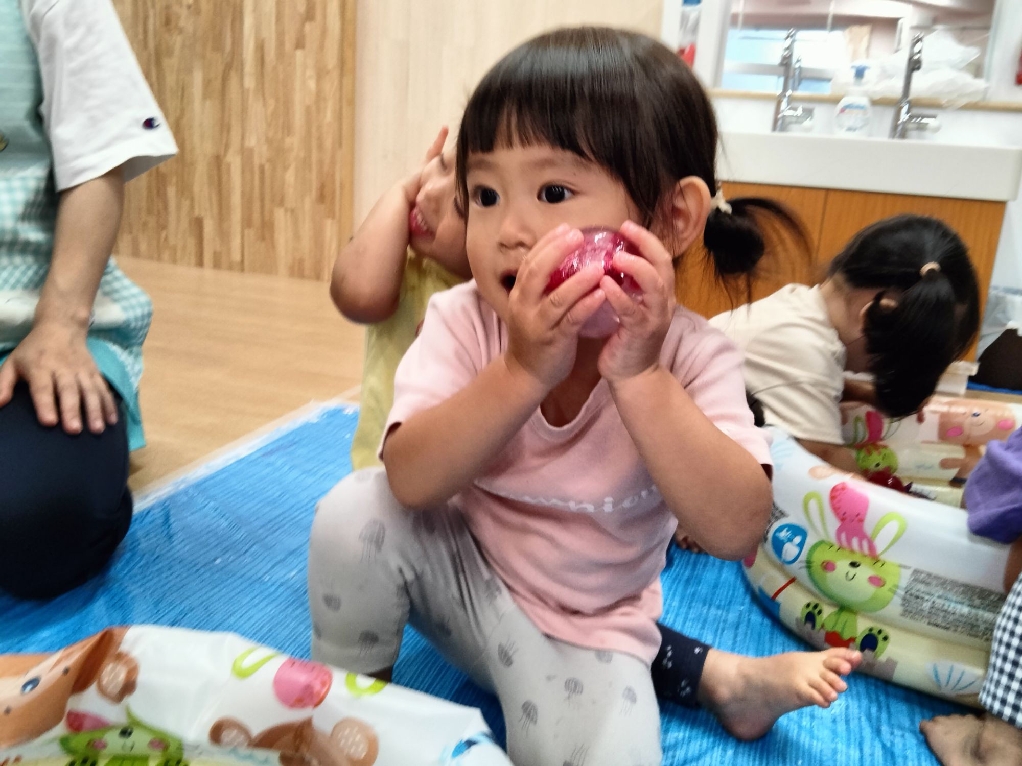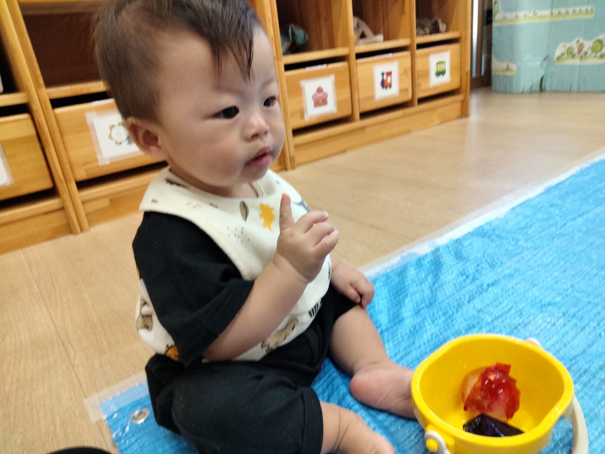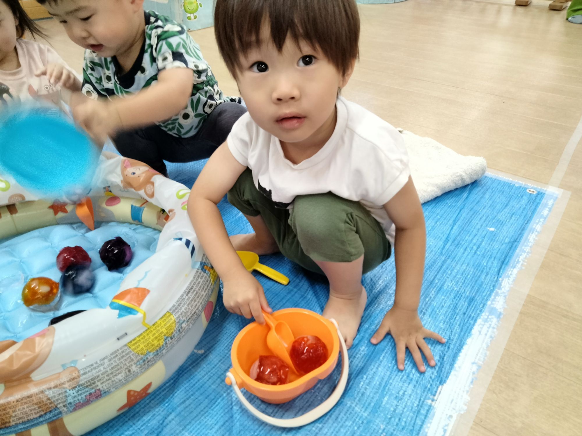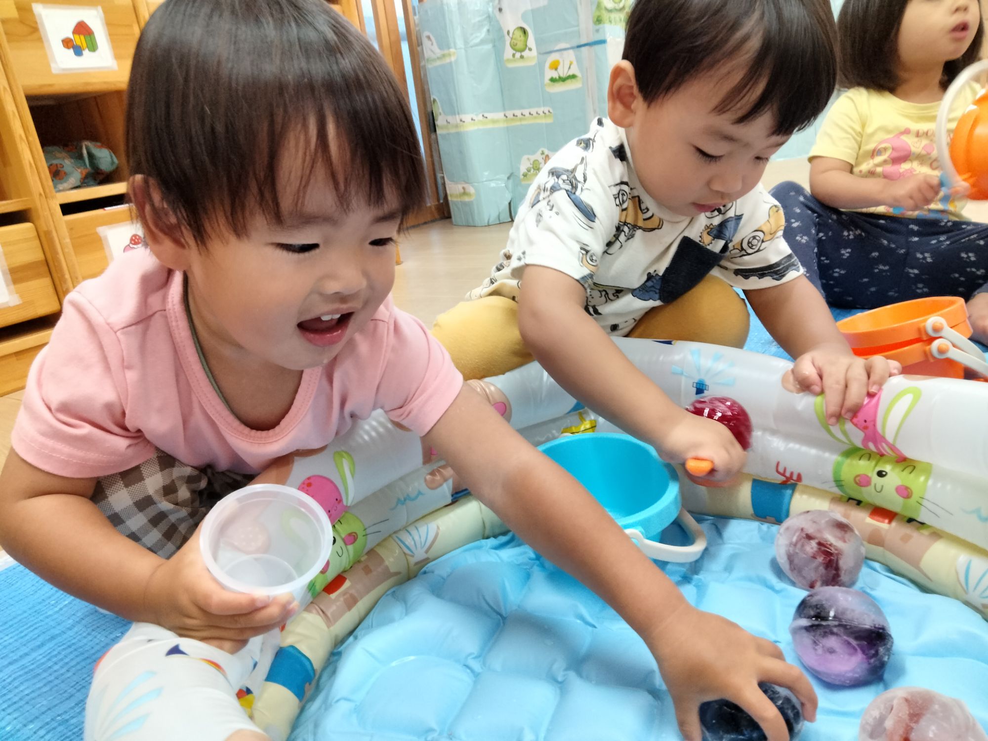 おひさま組のお友だちも冷たい感覚にびっくりしながらもそーっと触ってみてました✨️