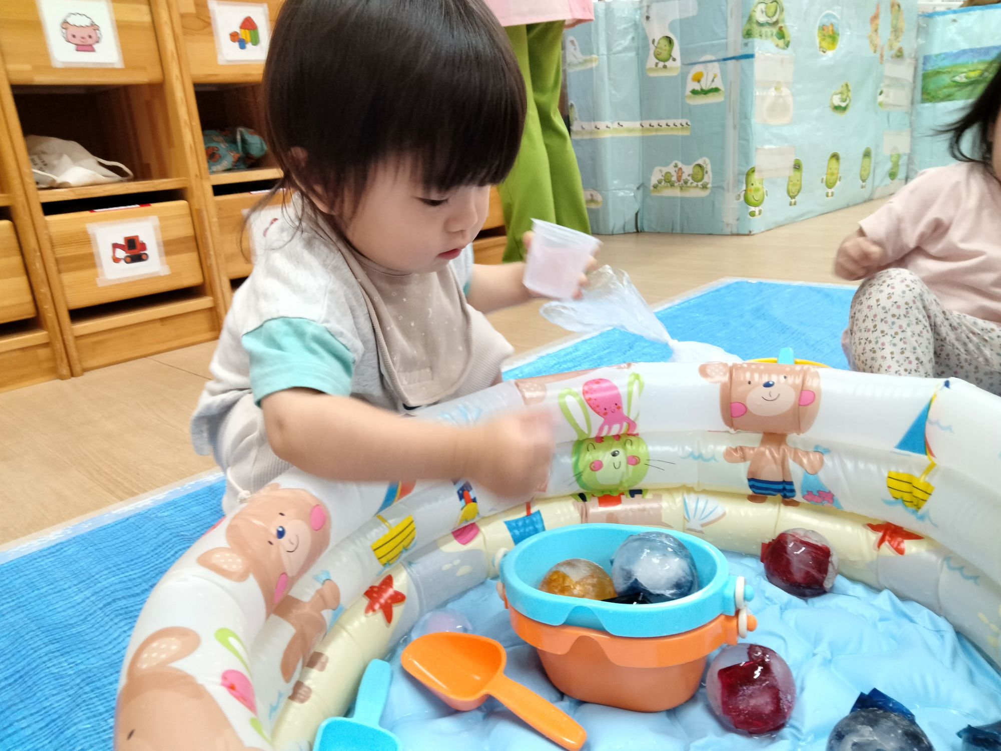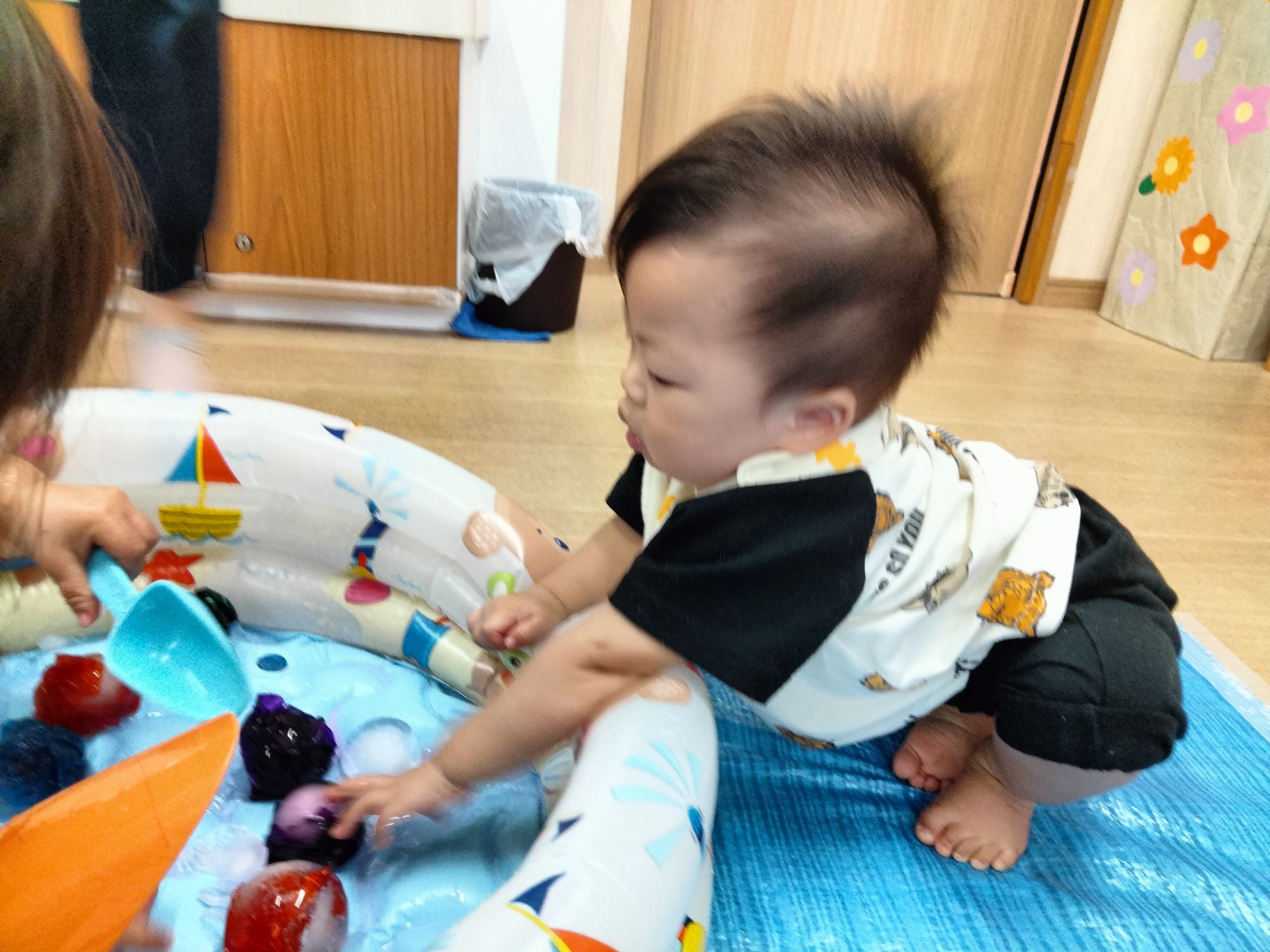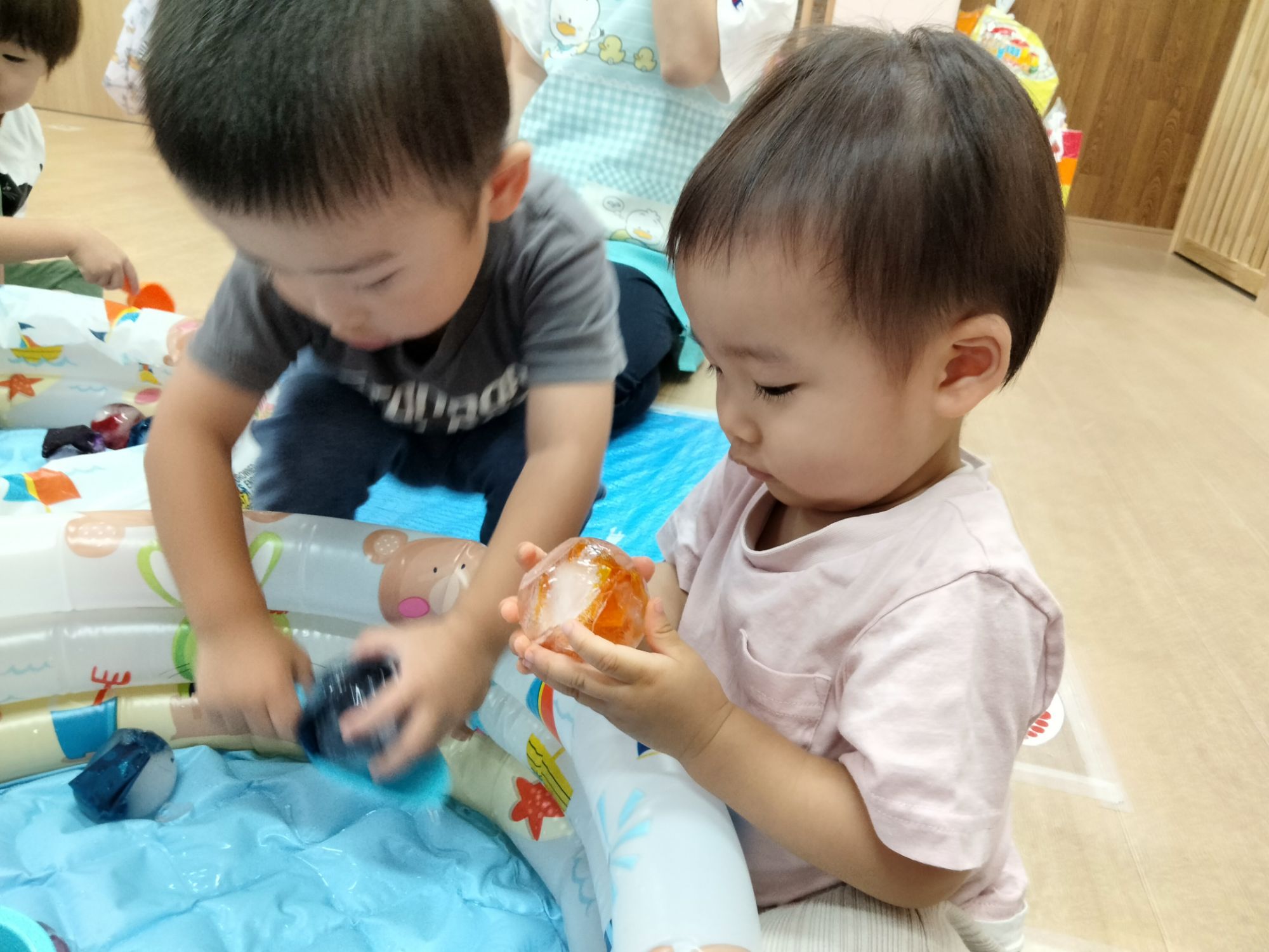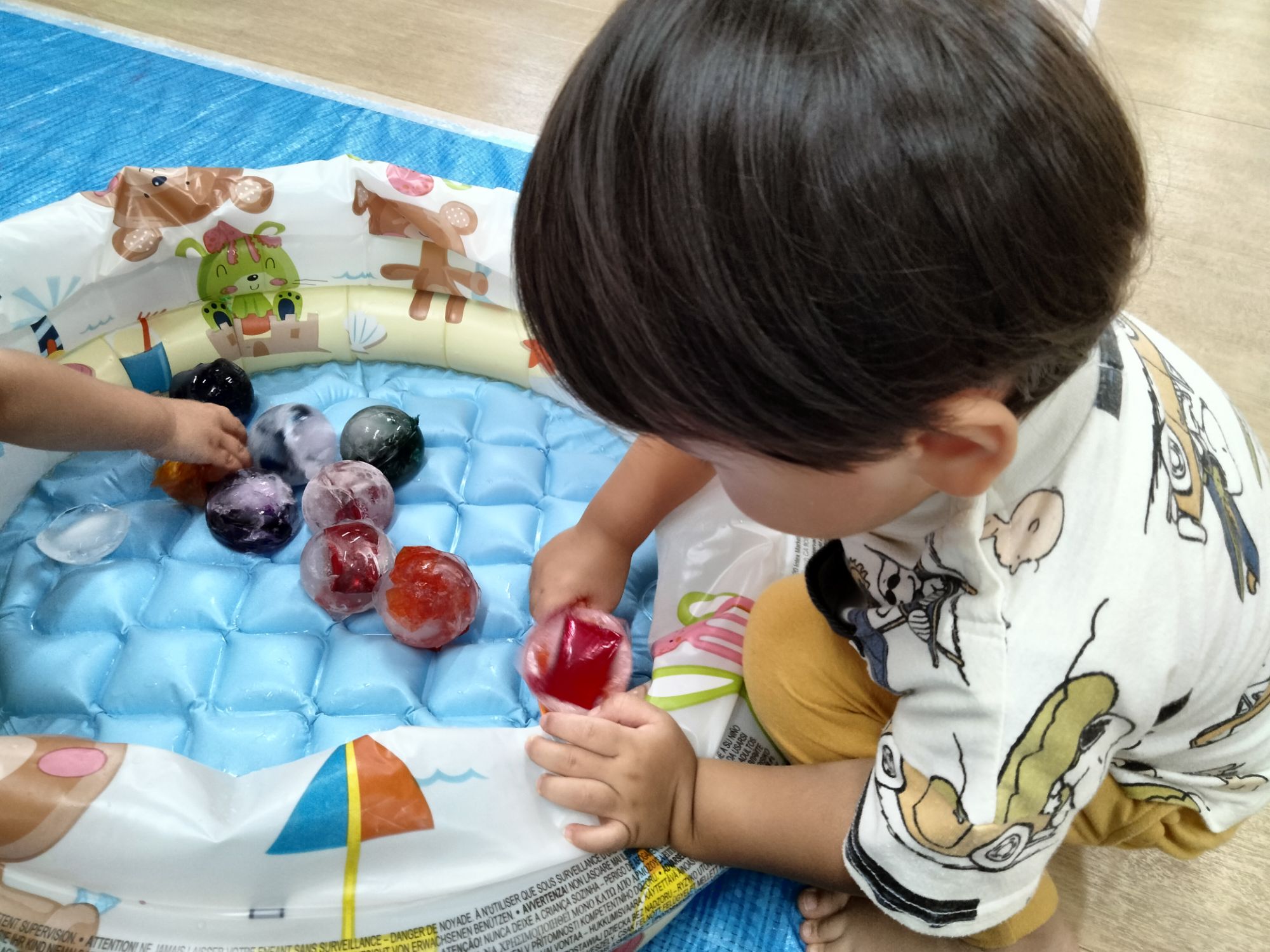 暑い日が続いてるので少し夏らしい体験をと思い氷遊びをしました🧊