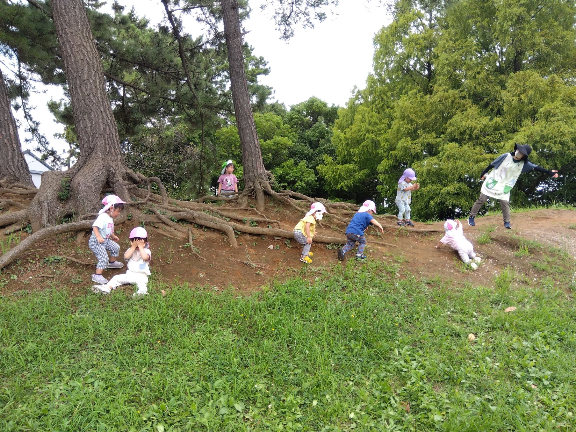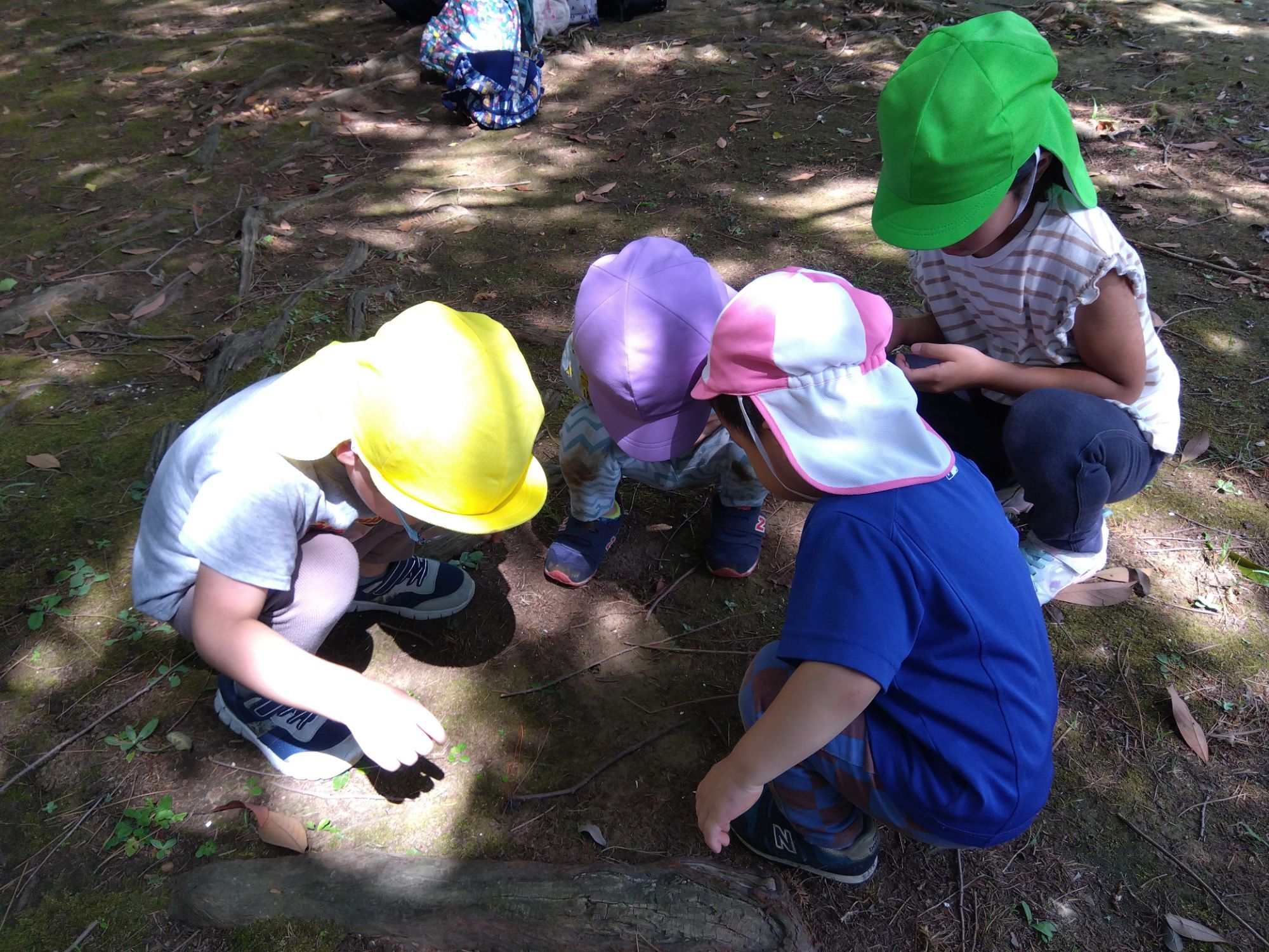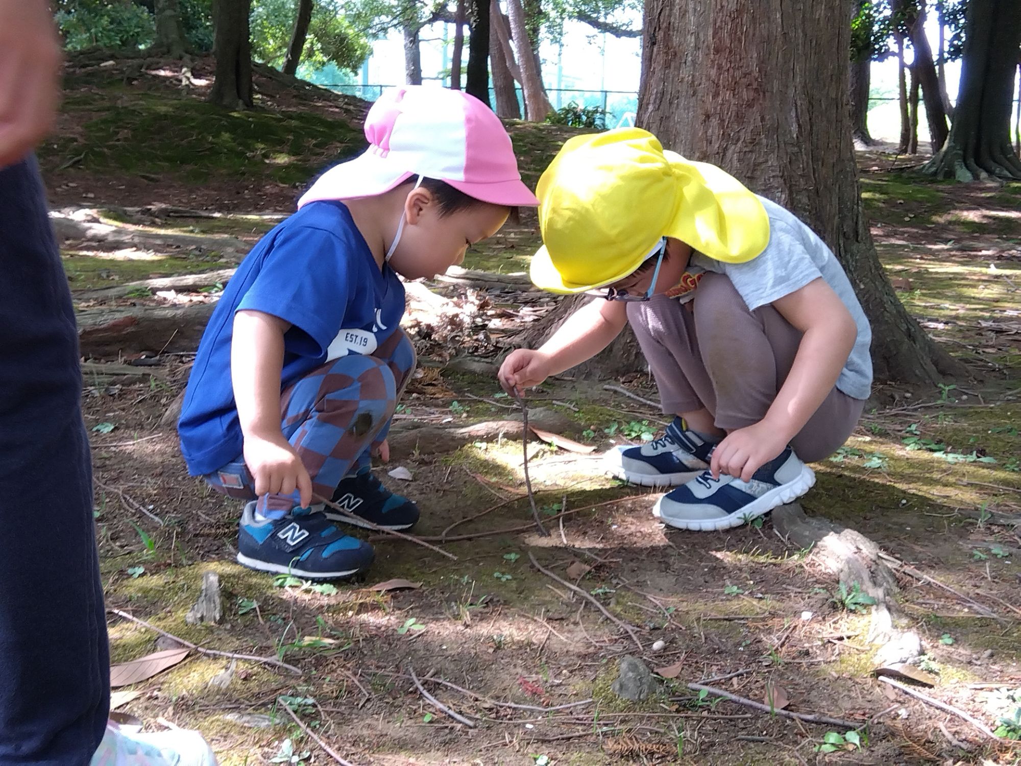 木陰では…穴を枝でツンツンしたり、虫を見つけてみんなで観察したり外遊びを楽しんでいました。