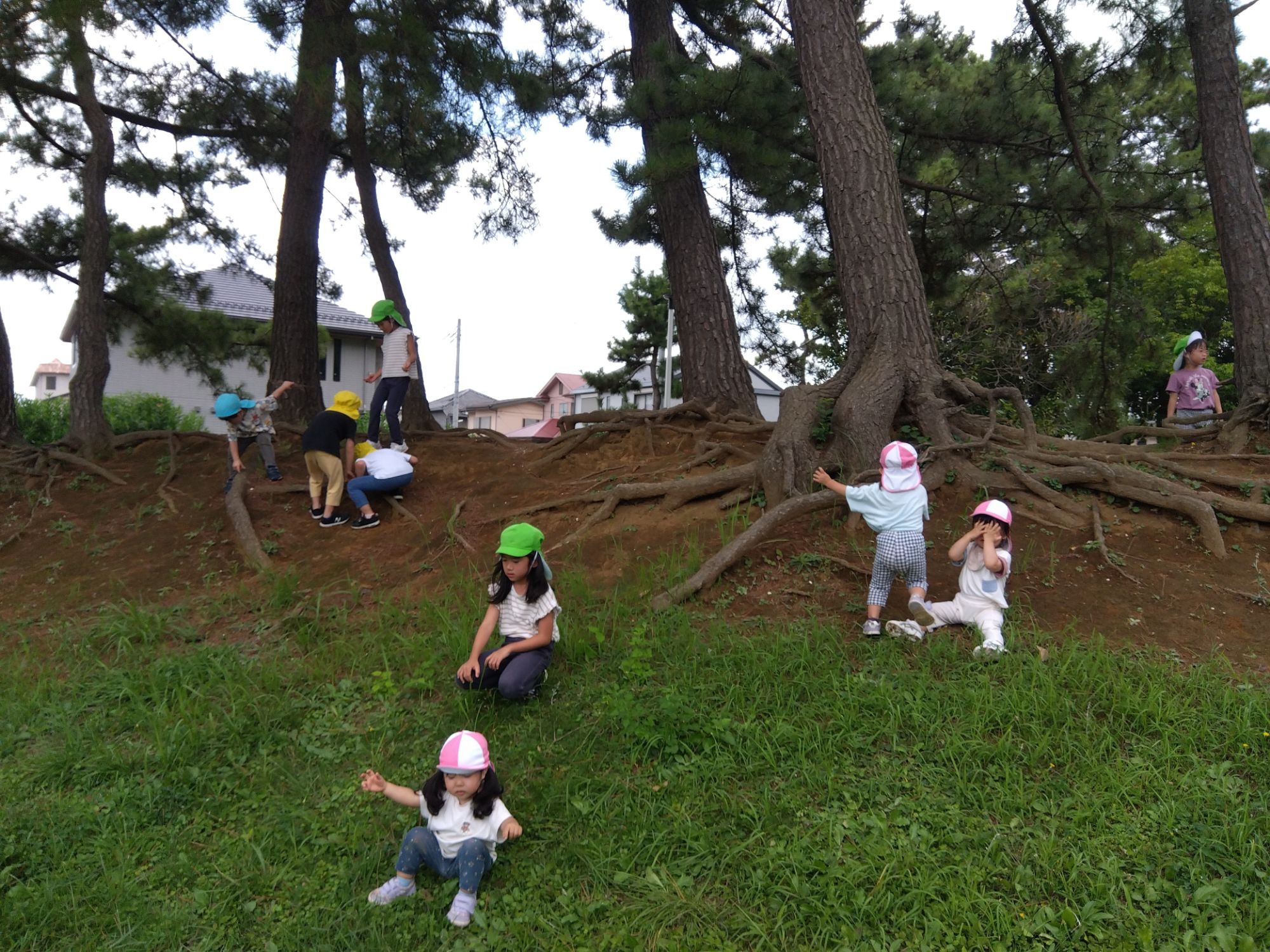 芝生の滑り台を滑って、ズボンが茶色くなる程、自然の感触を楽しんでいましたよ‼️