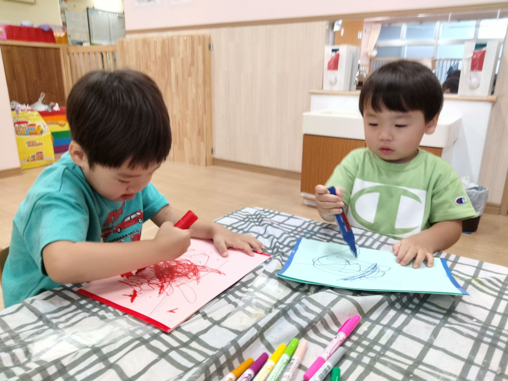 自分で色を選び、自由に描く…一人ひとりが “想像力” やその時に生まれた “発想力” が存分に発揮された活動となりました🤗✨