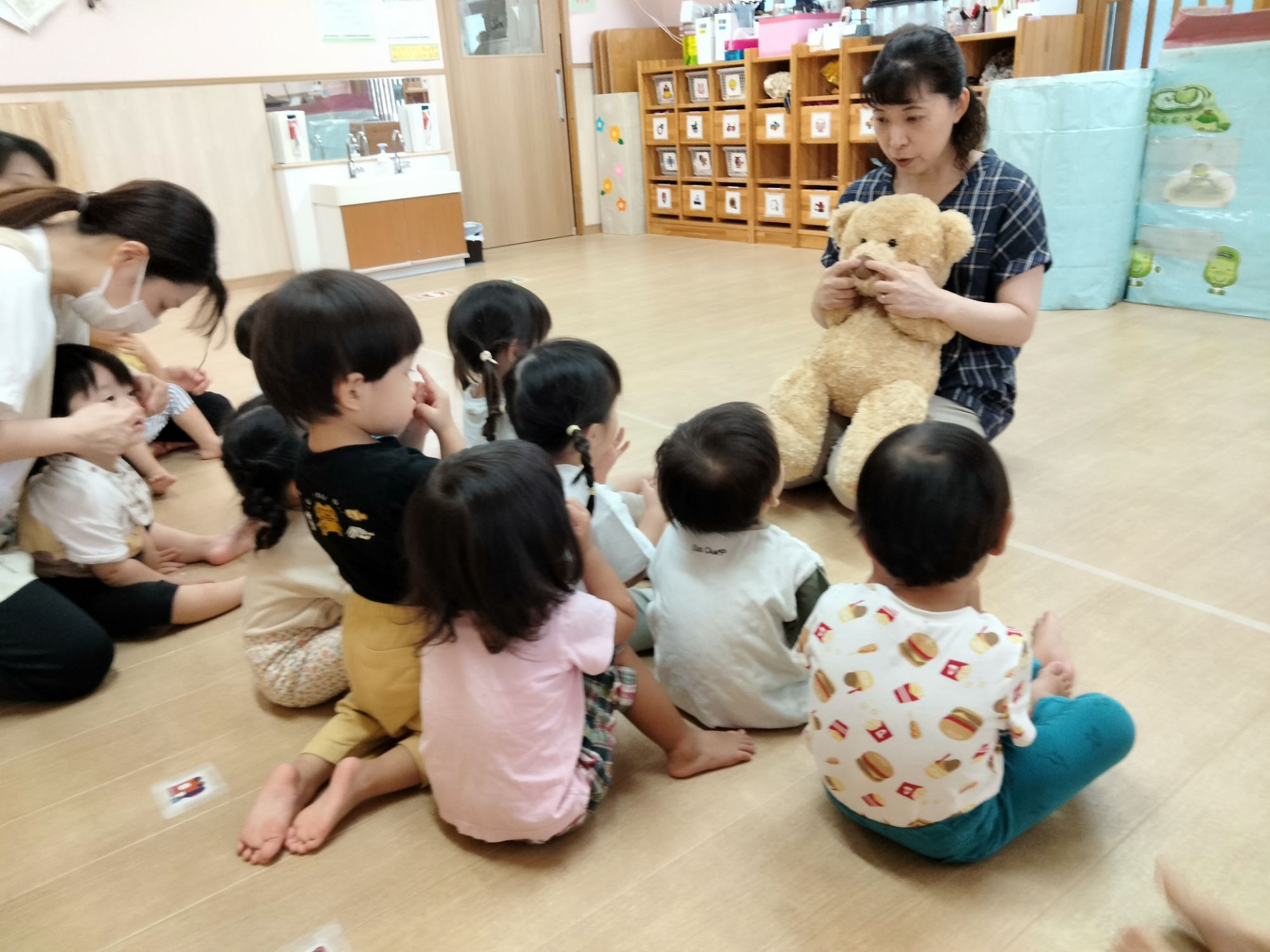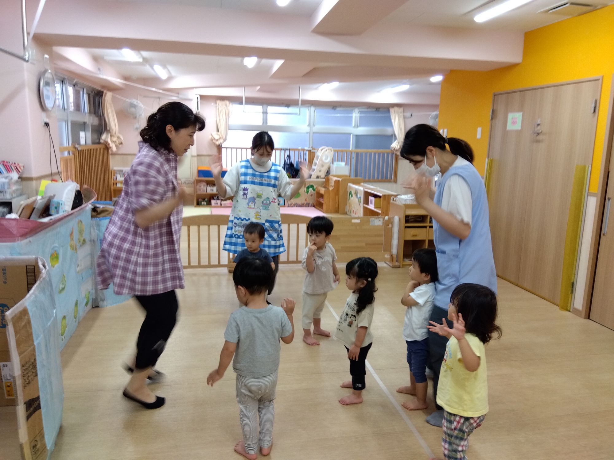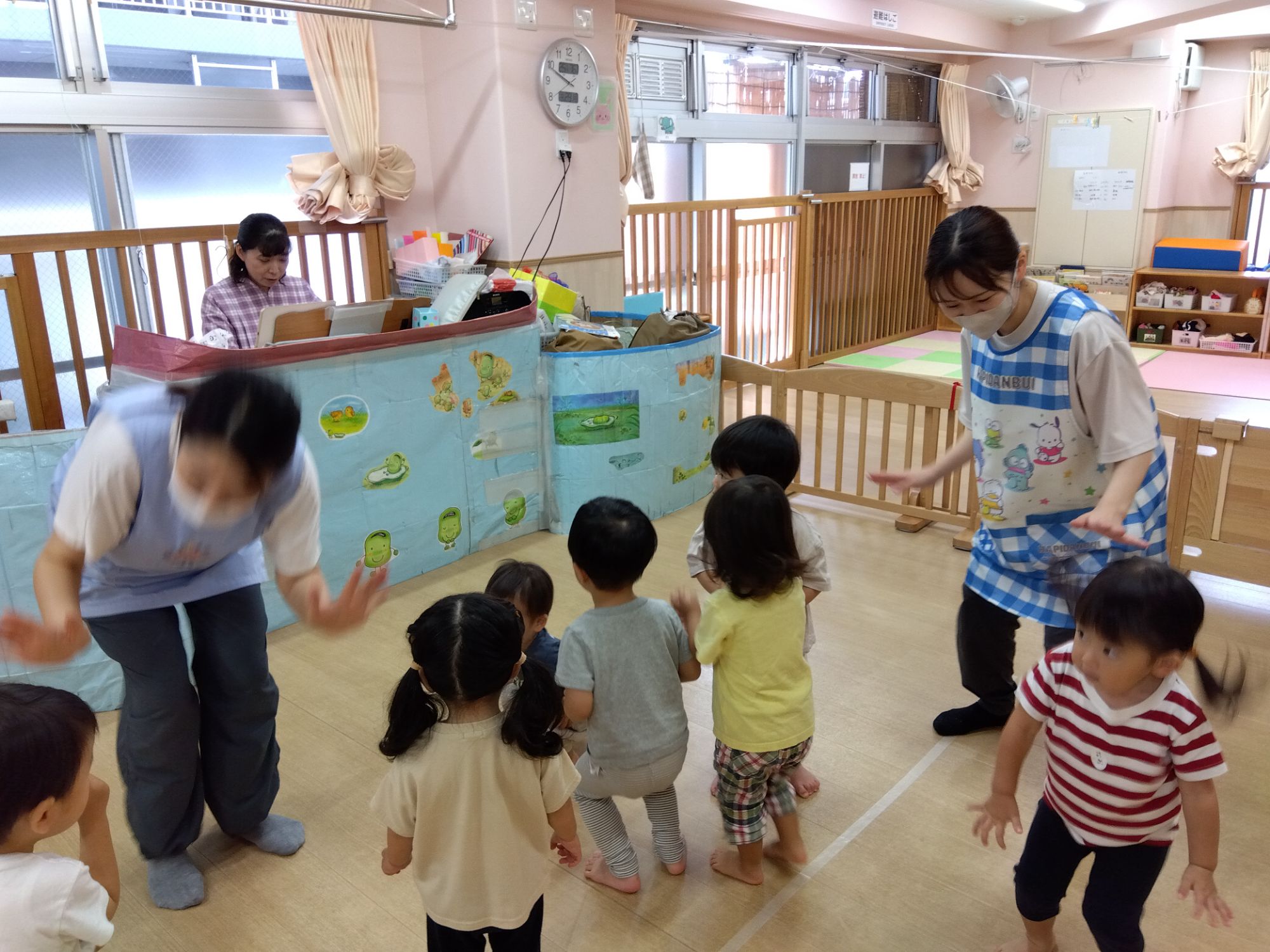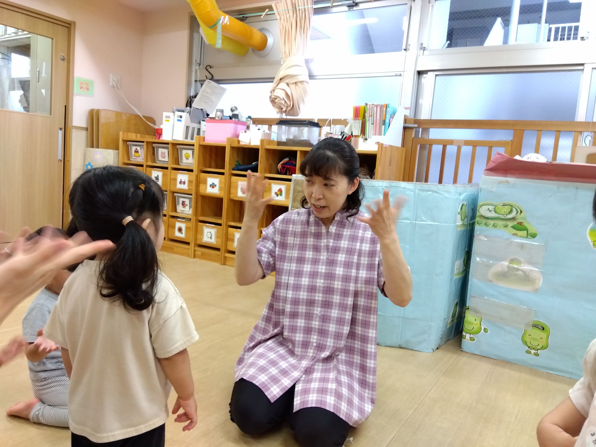 お次は歌に合わせてお友だちや保育者とトントンと体に触れてみます!