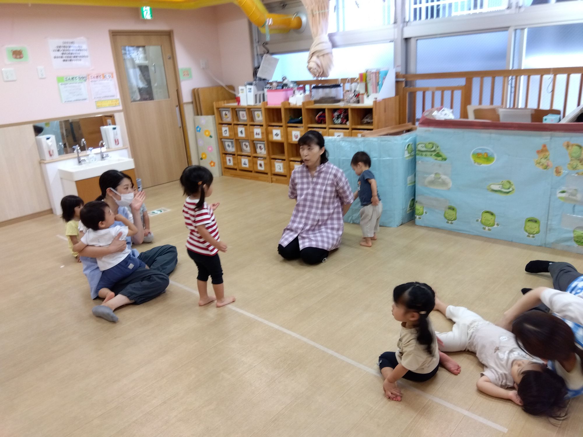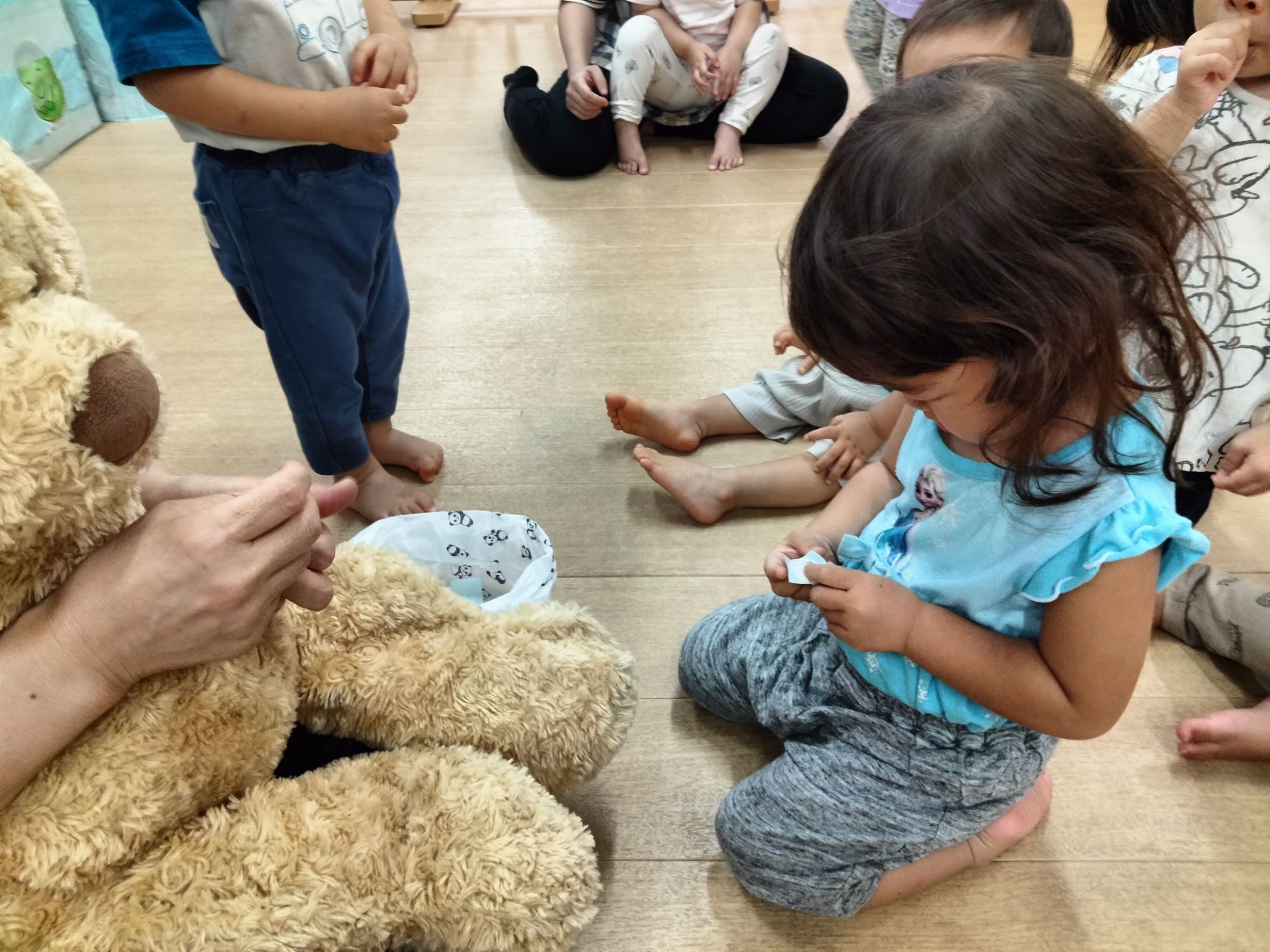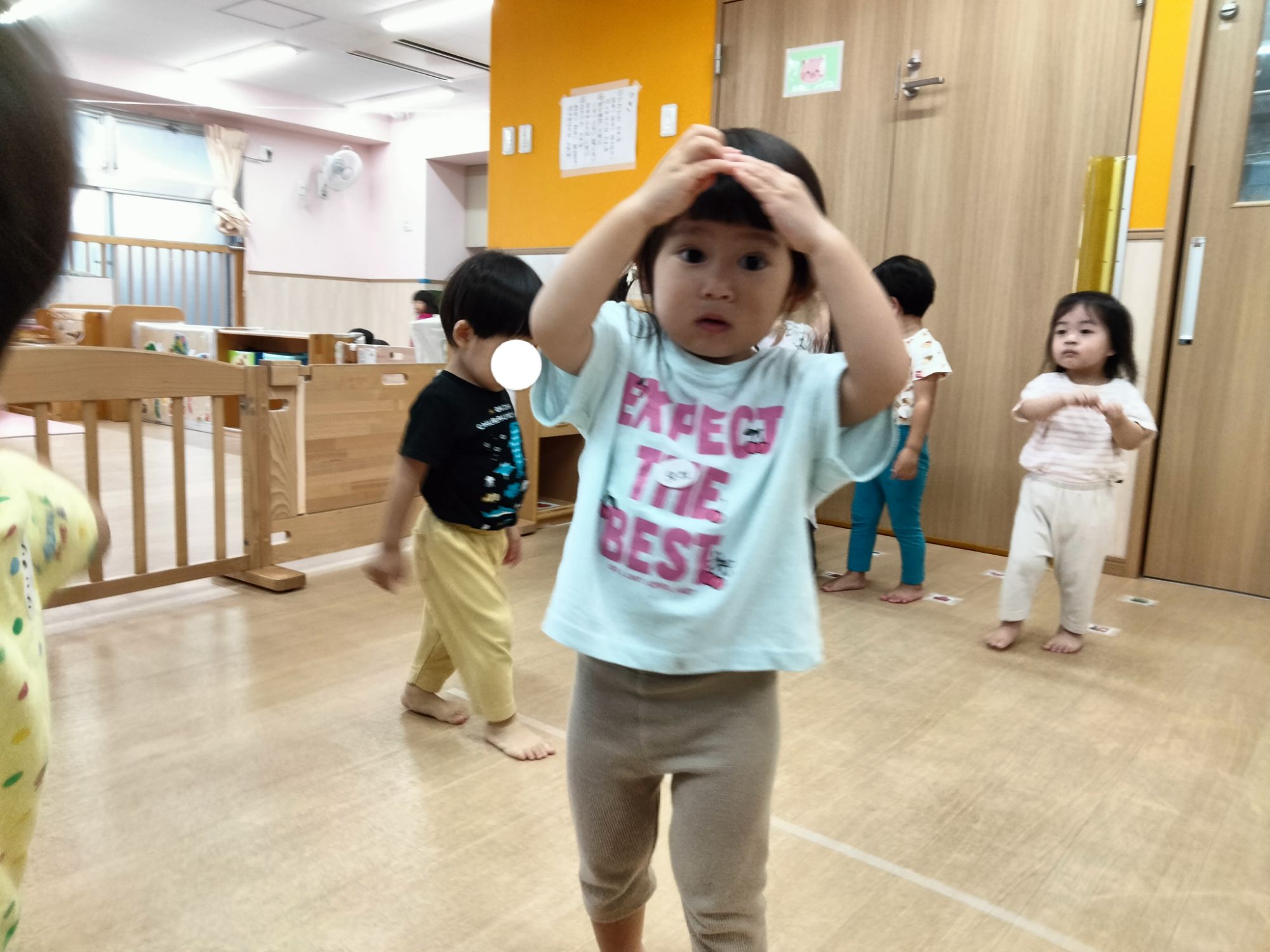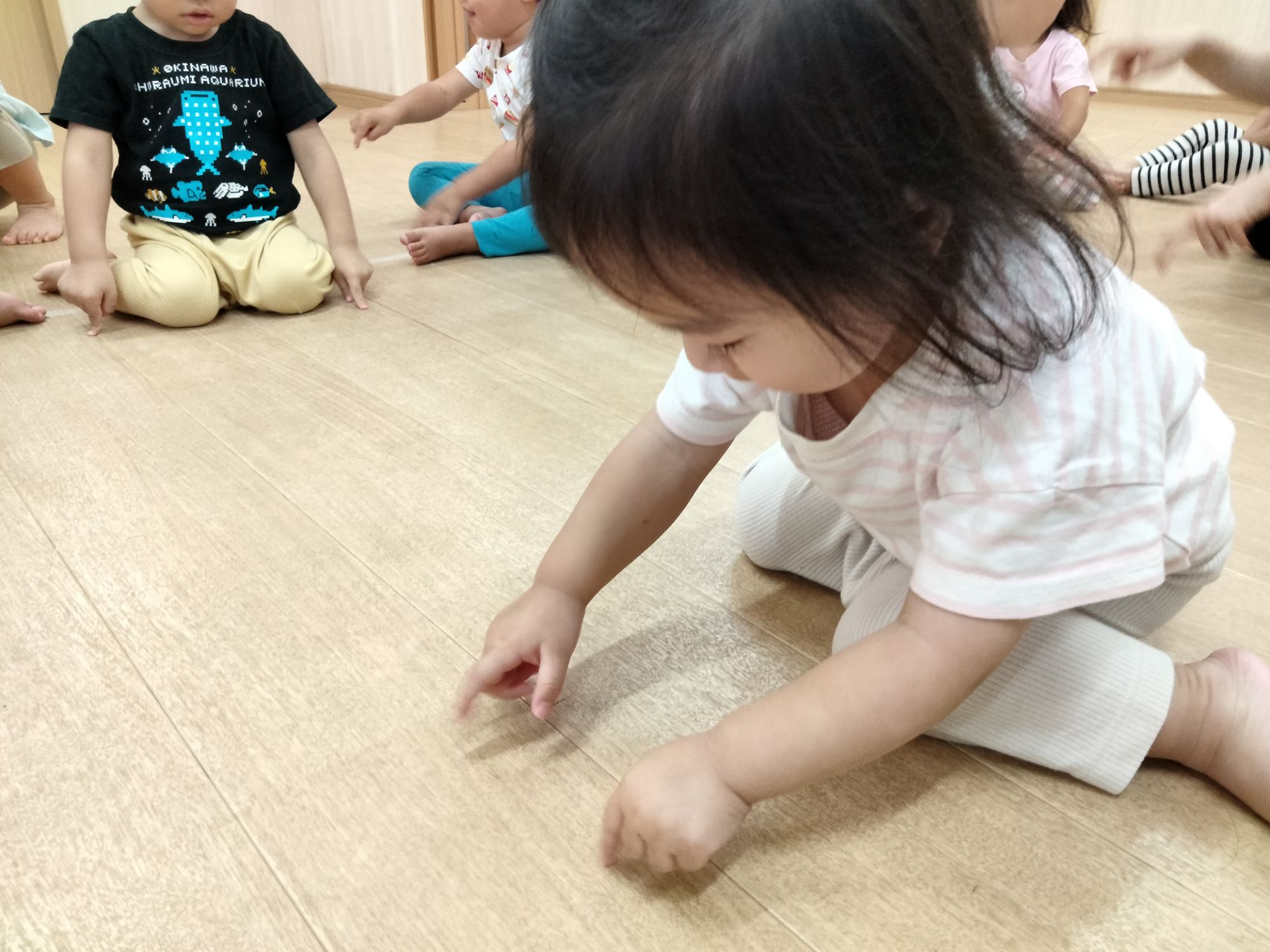 お次はリズムに合わせて手のひらで床を叩いてみたり、指先ちょんちょんと🎶と触ってみたりもしました😊
