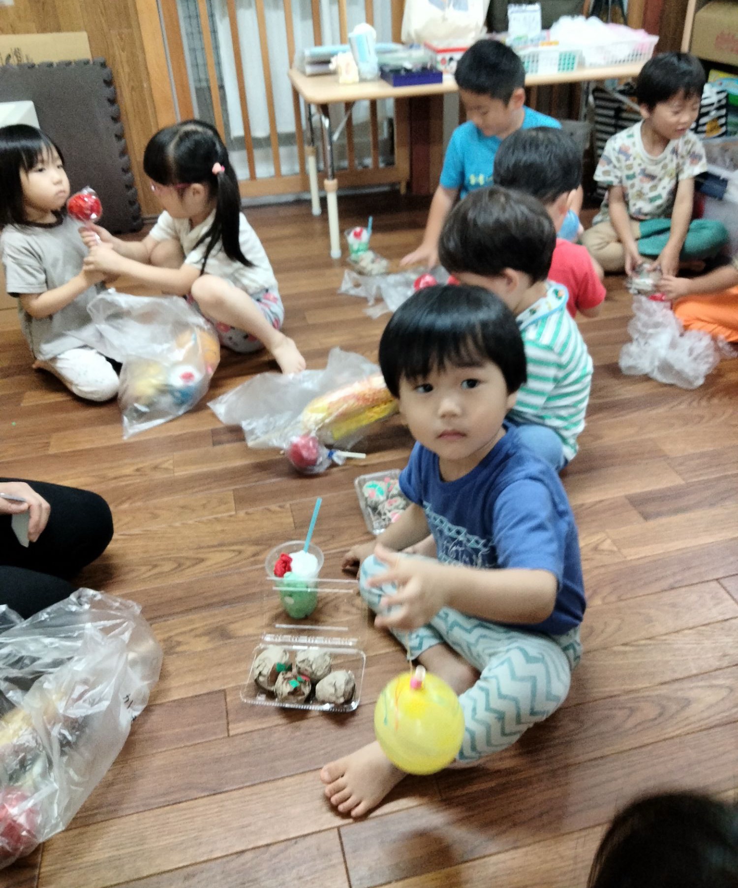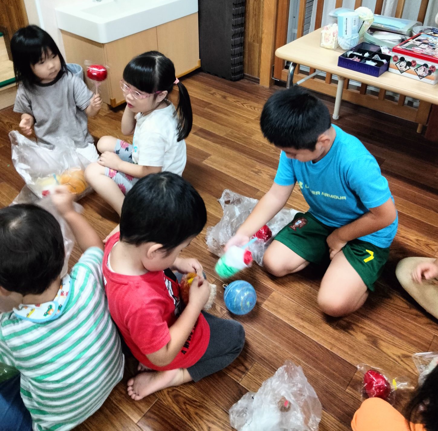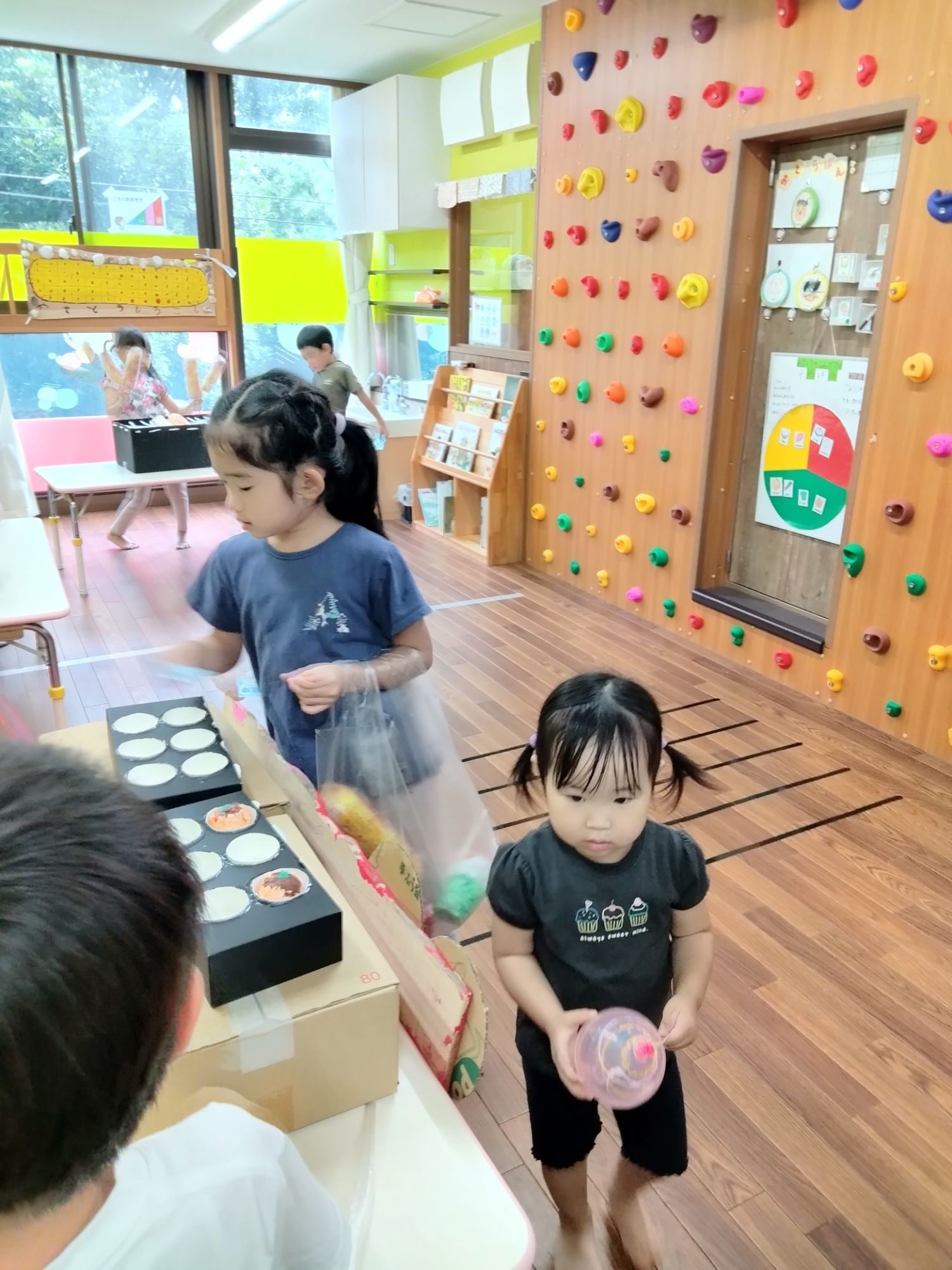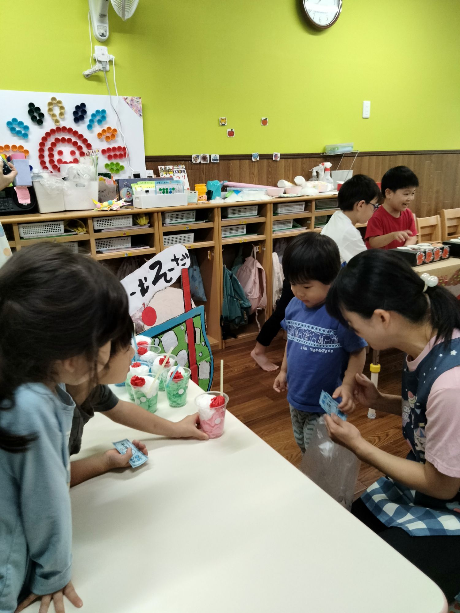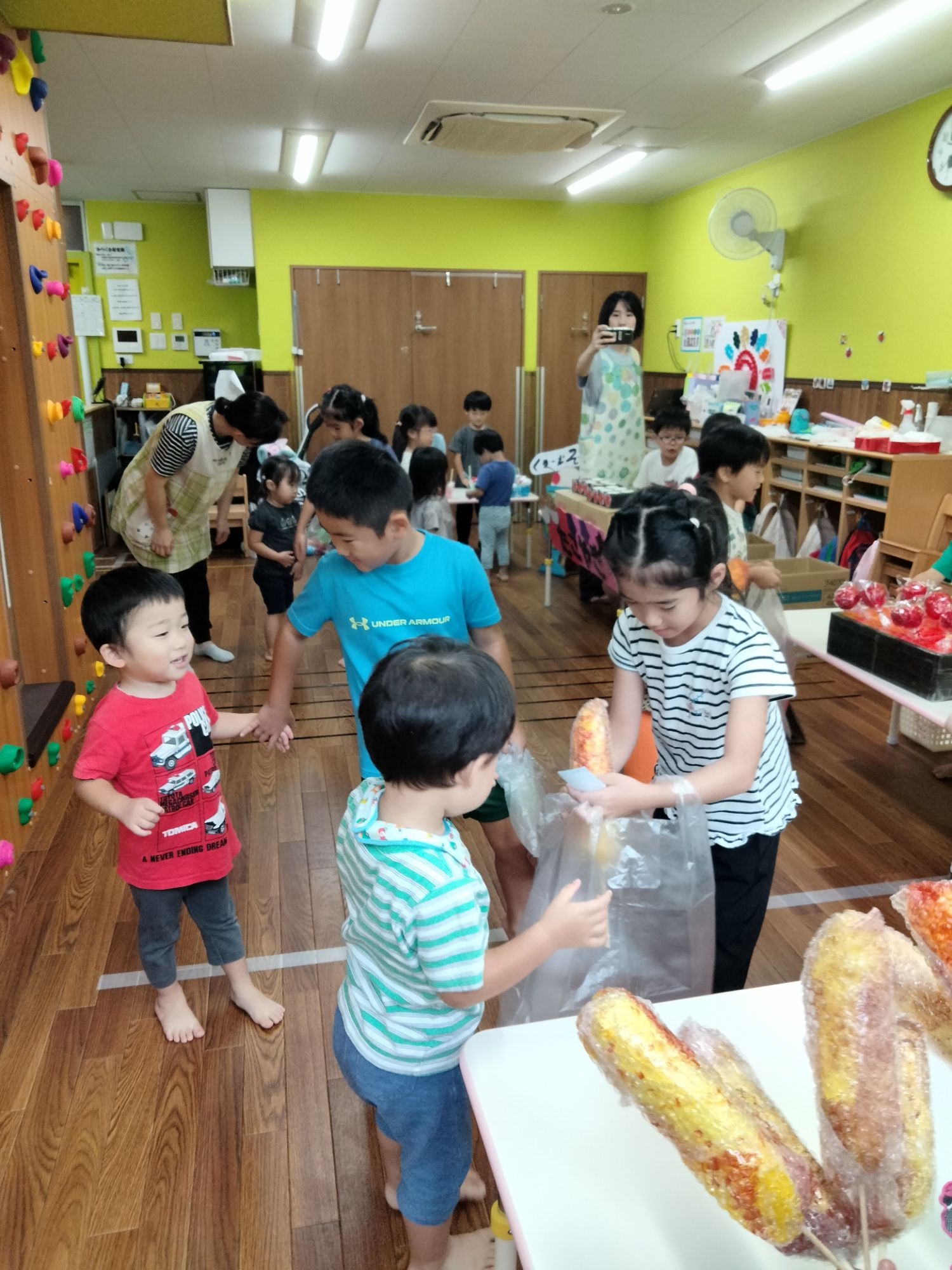 幼児組さんが秋祭りで出店した屋台ににじ組さんを招待してくれました!