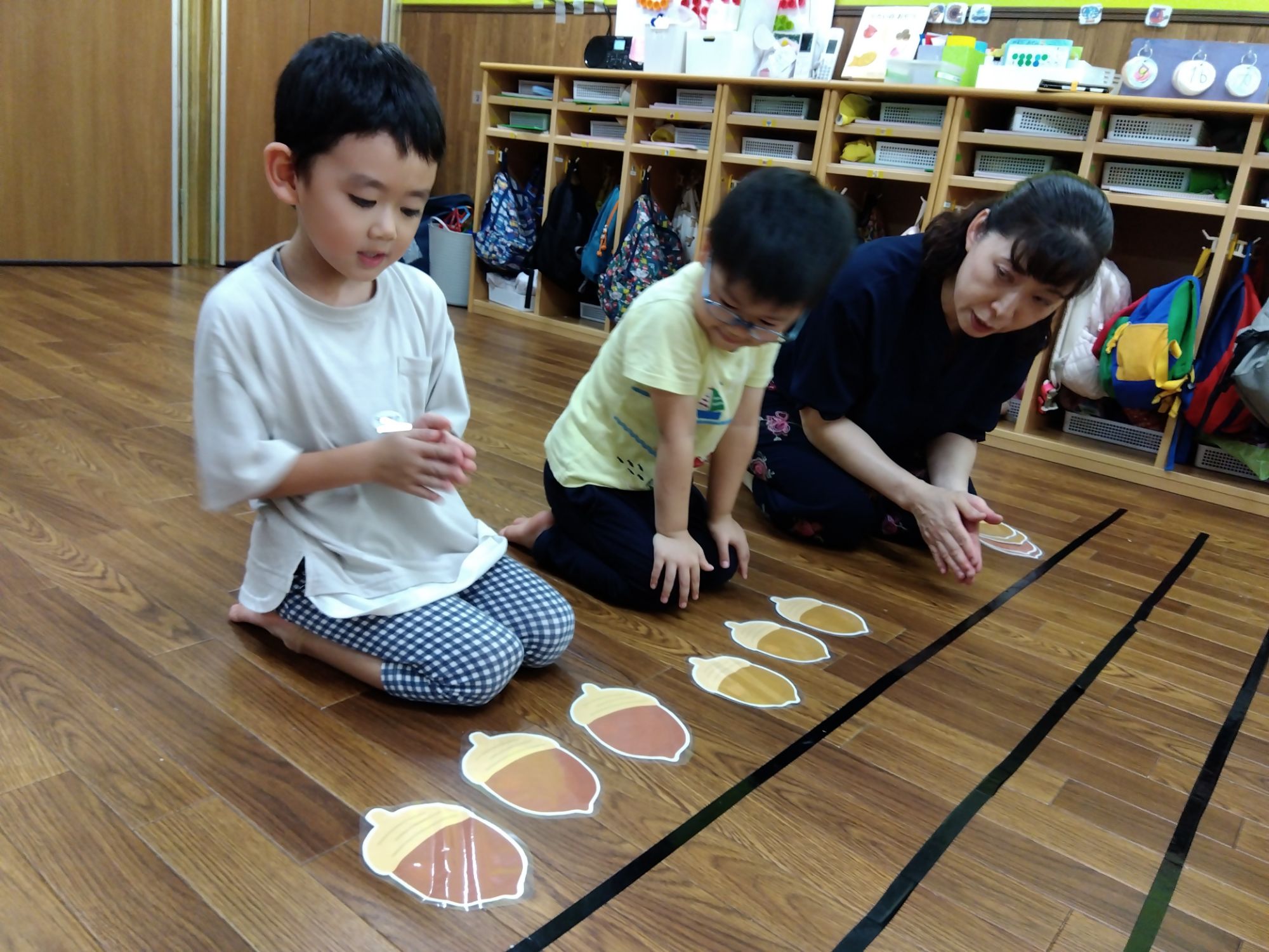 先生と一緒に、どんぐりの数だけ手を叩きます