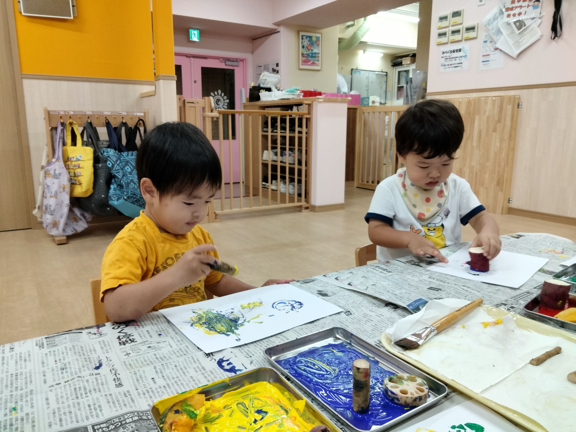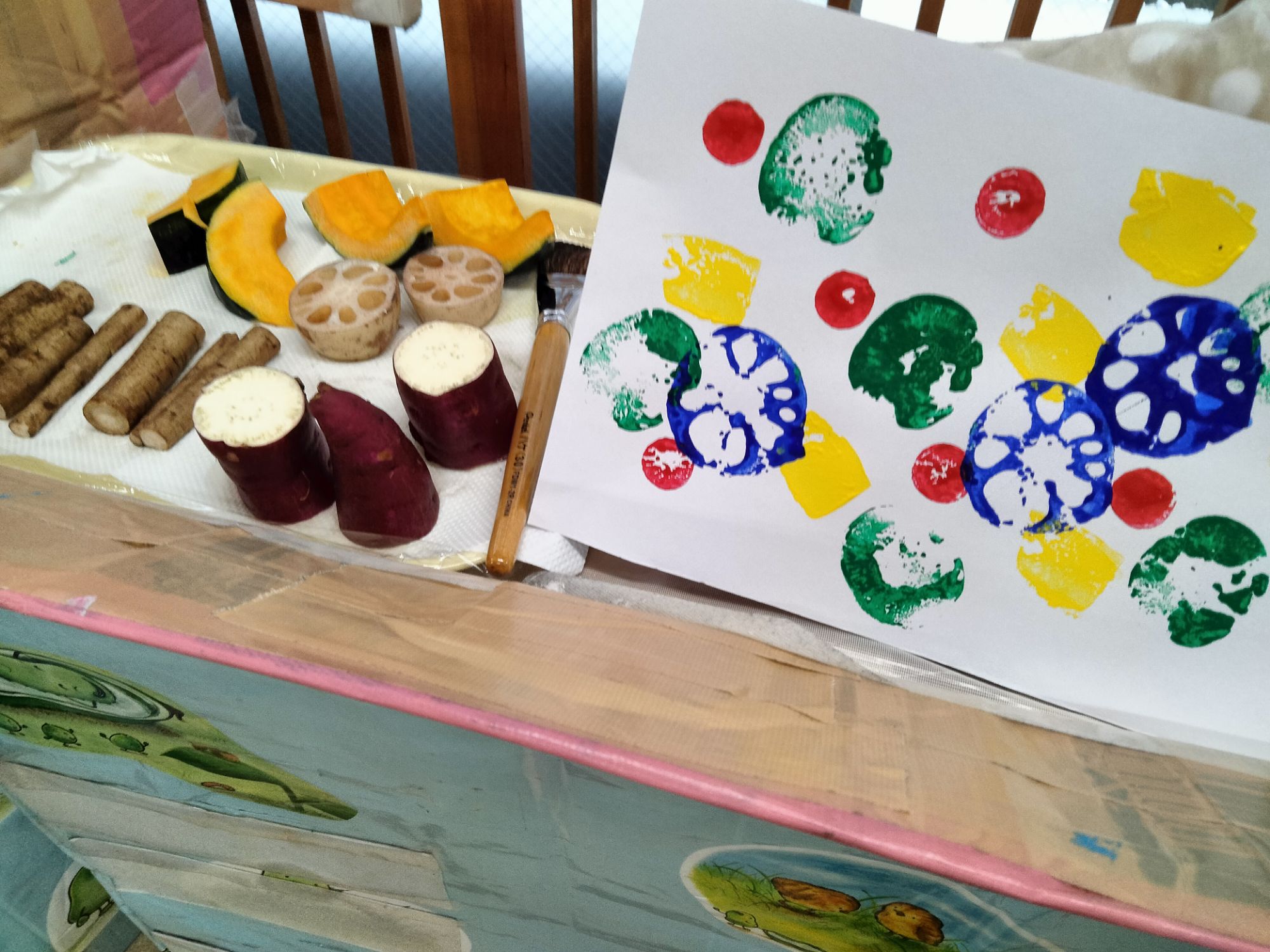 今日は、ひかり組さんとにじ組さんで野菜スタンプ\(^o^)/