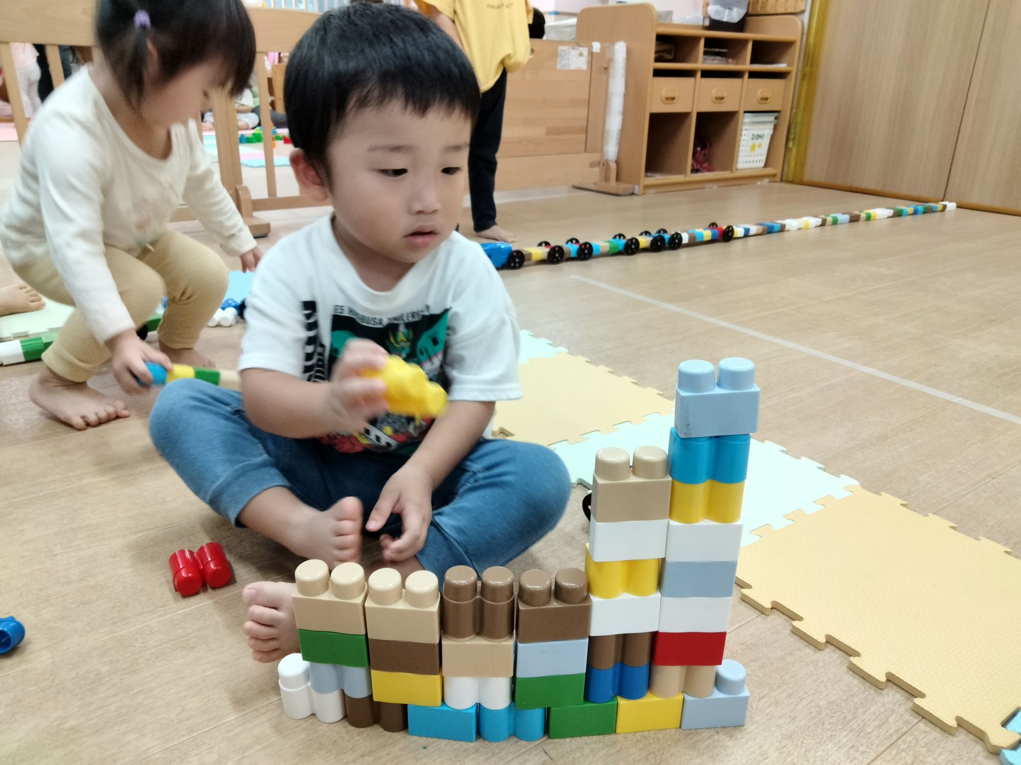 「先生、一緒にお家作ろう」と言って、積み上げたり🏘️