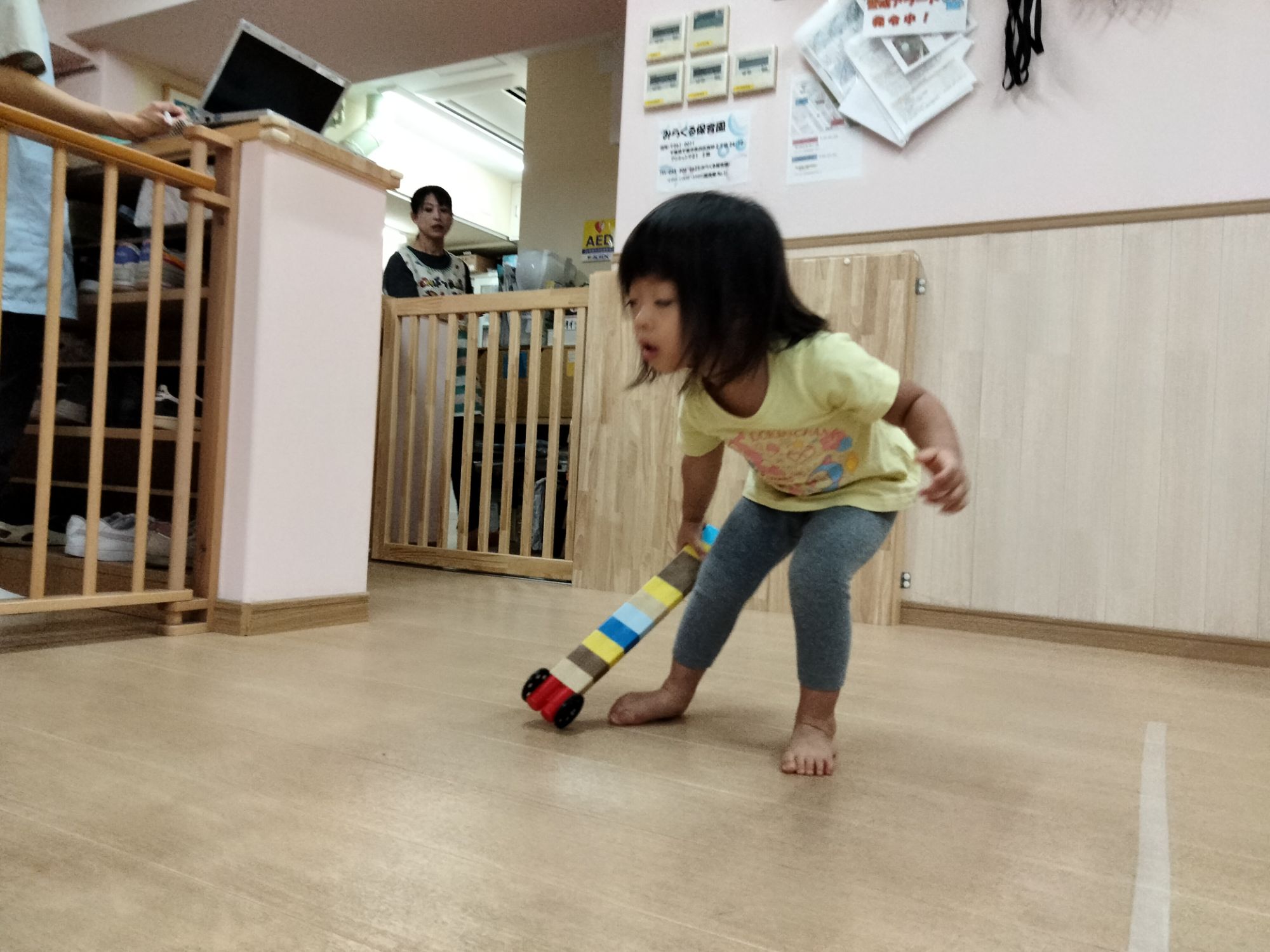 タイヤをついた部分を転がして、掃除機に見立て掃除をする姿も見られました🌟
