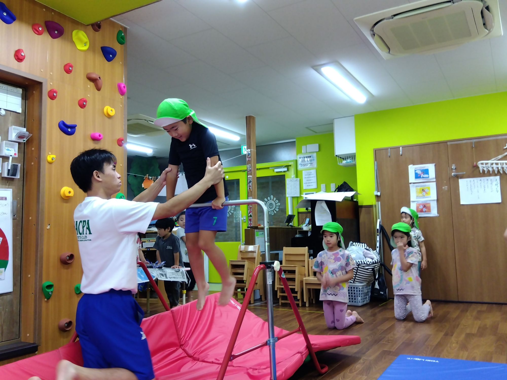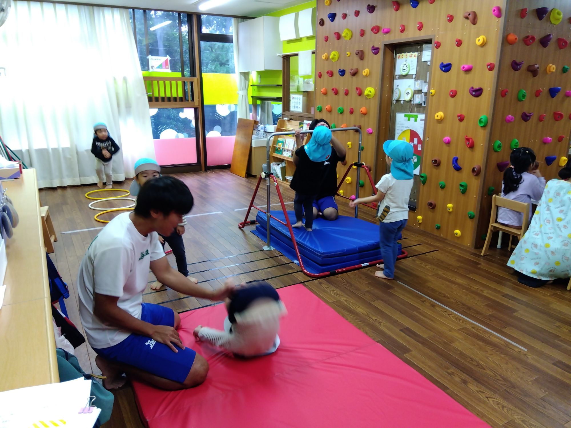 ウォーミングアップの『豚の丸焼き🐖』みらい組のお友達は軽やかにこなしてます😊