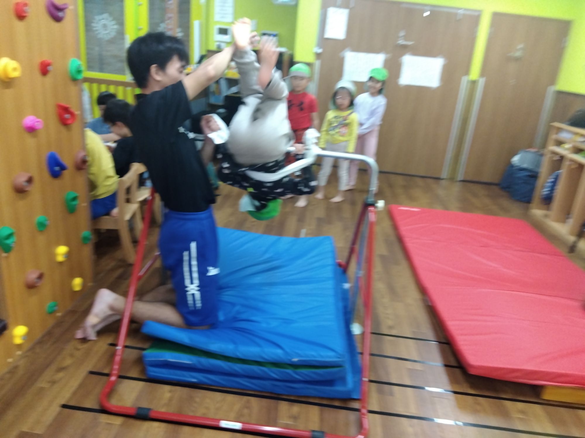 前回り、ツバメの姿勢に一度止まってから回るとカッコ良い!って気がついたこどもたちです🤭