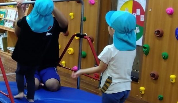逆上がりにチャレンジする前に、腕を曲げたままぶら下がる練習です。