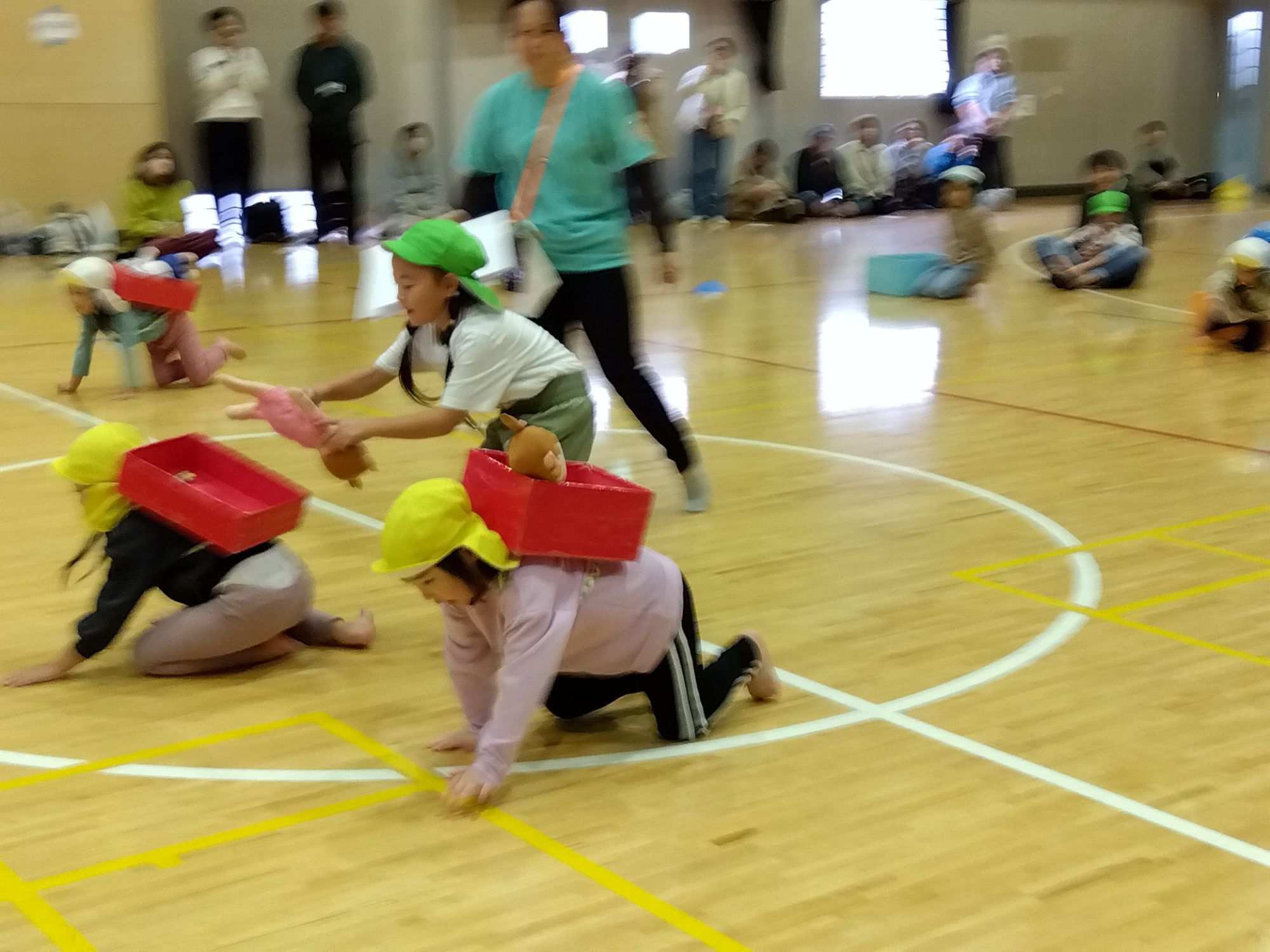 さぁ〜大変!借り物レースの要領で、まずはその先生を探すところから💦難易度MAXでしたが、みんな無事に荷物を運ぶことが出来ました!