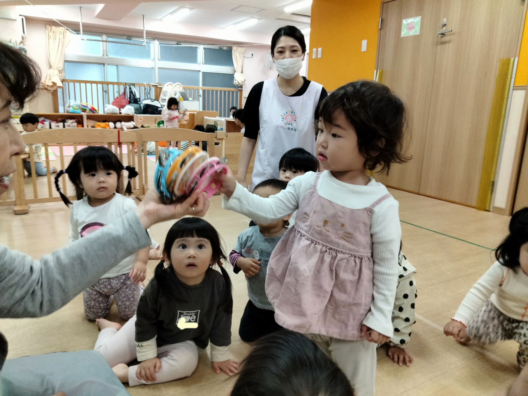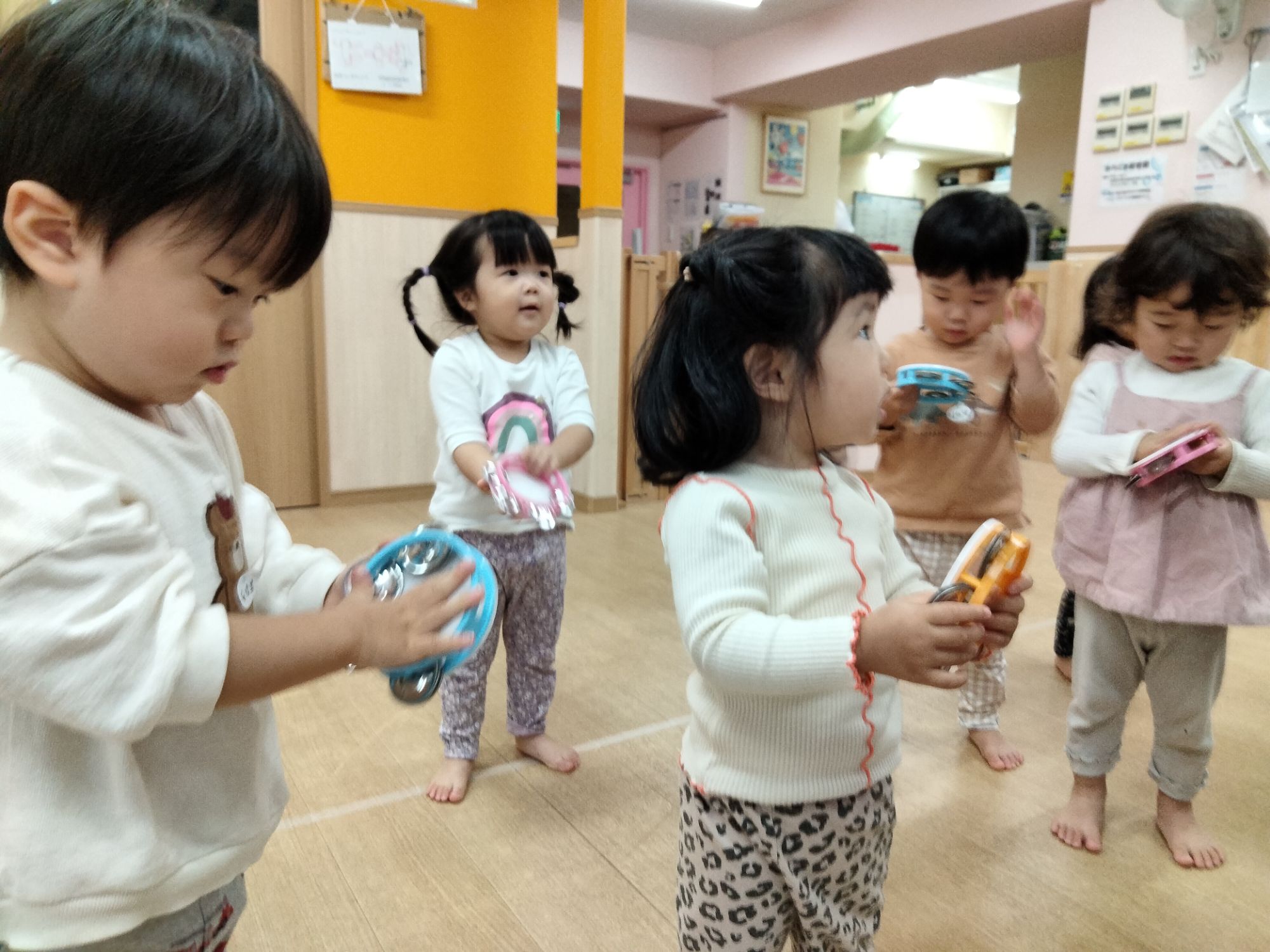 シャンシャンシャン!と歌に合わせて沢山鳴らしてみる子もいました✨️