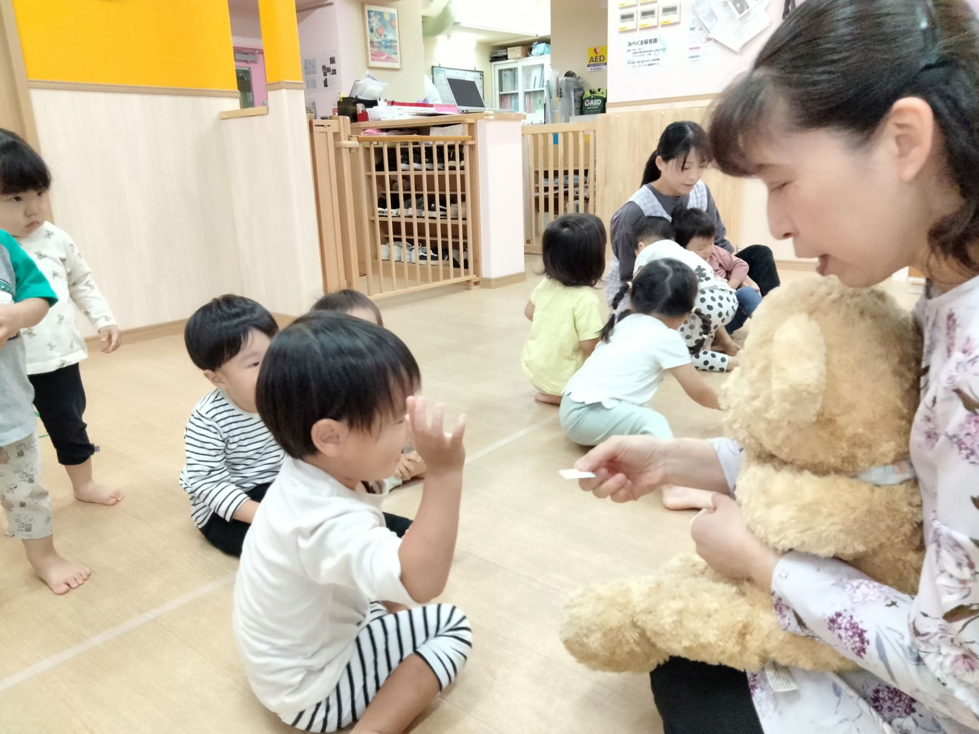元気よく「はーい✋️✨️」と返事をしてから、お名前シールを受け取ります🤗