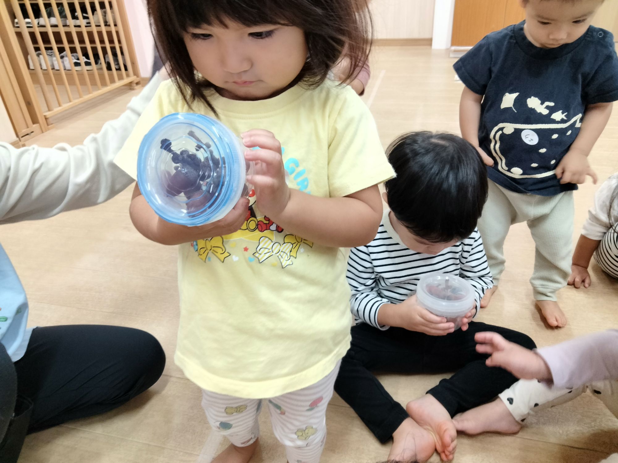 今月も沢山の音楽や音、動き触れながら、秋の自然物(本物)の感触、形、色を体感した子ども達でした✨️