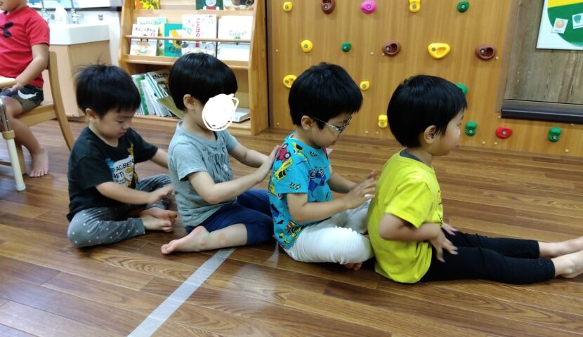 リズムをしっかり聞き分けて…お友達の背中をなでなでしたり、ツンツンしたり…