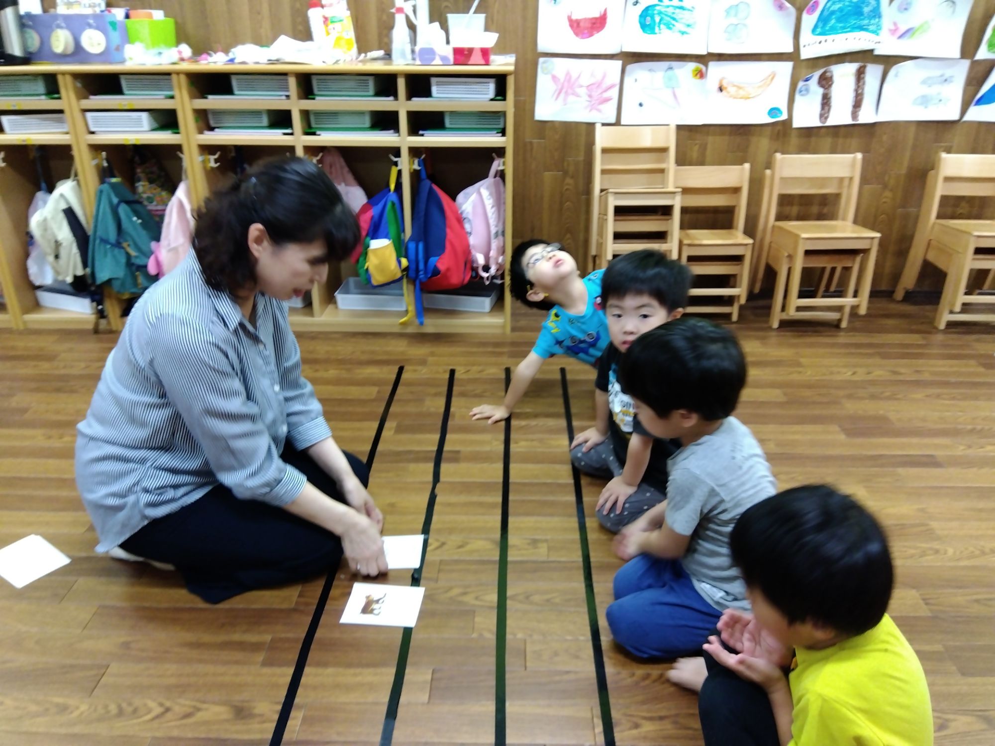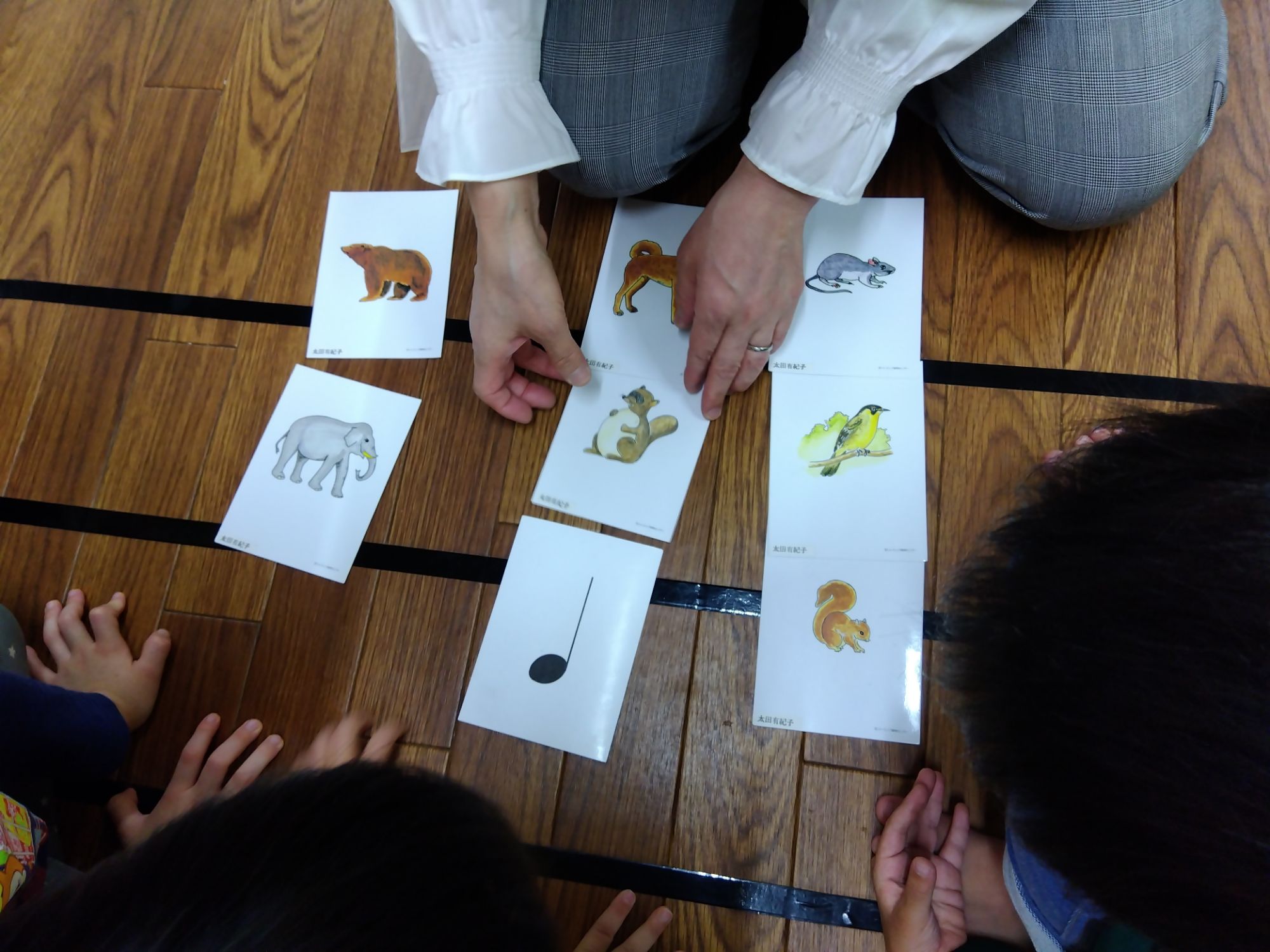 動物の体の大きさで音符の長さを感じます。小さい動物は短い音、大きい動物は長い音というのを体感で覚えていきます。