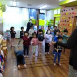 音符の上に乗ってリズムよく歩きます。最後の音符でストップ!…リズムをピタッと止めるって難しい…💦