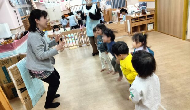 リズムをしっかり聞き分けて…お友達の背中をなでなでしたり、ツンツンしたり…