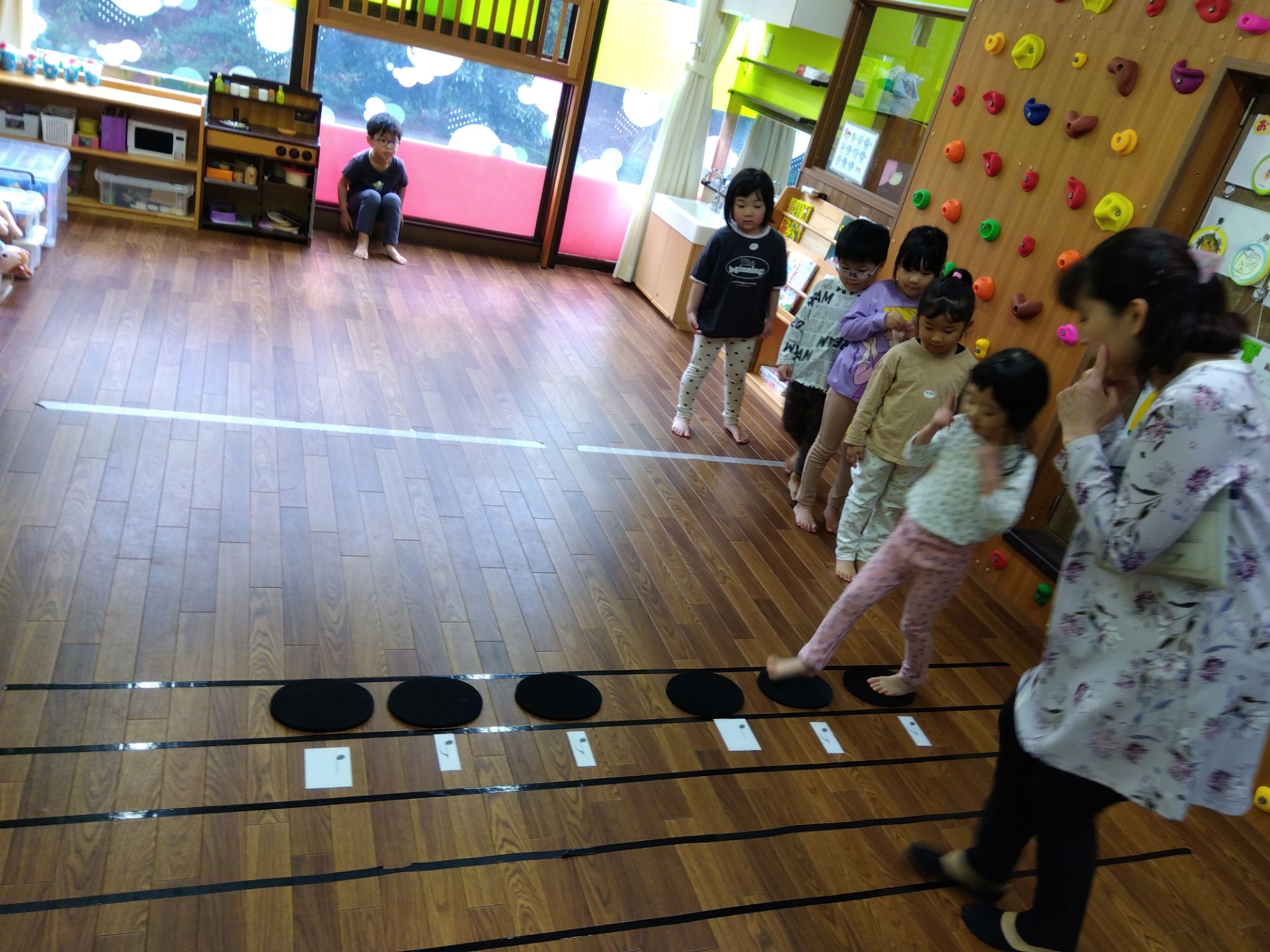 音符のリズムをきざみながら、テンポよく音符の上を歩きますが💦💦最後のストップが難関😥
