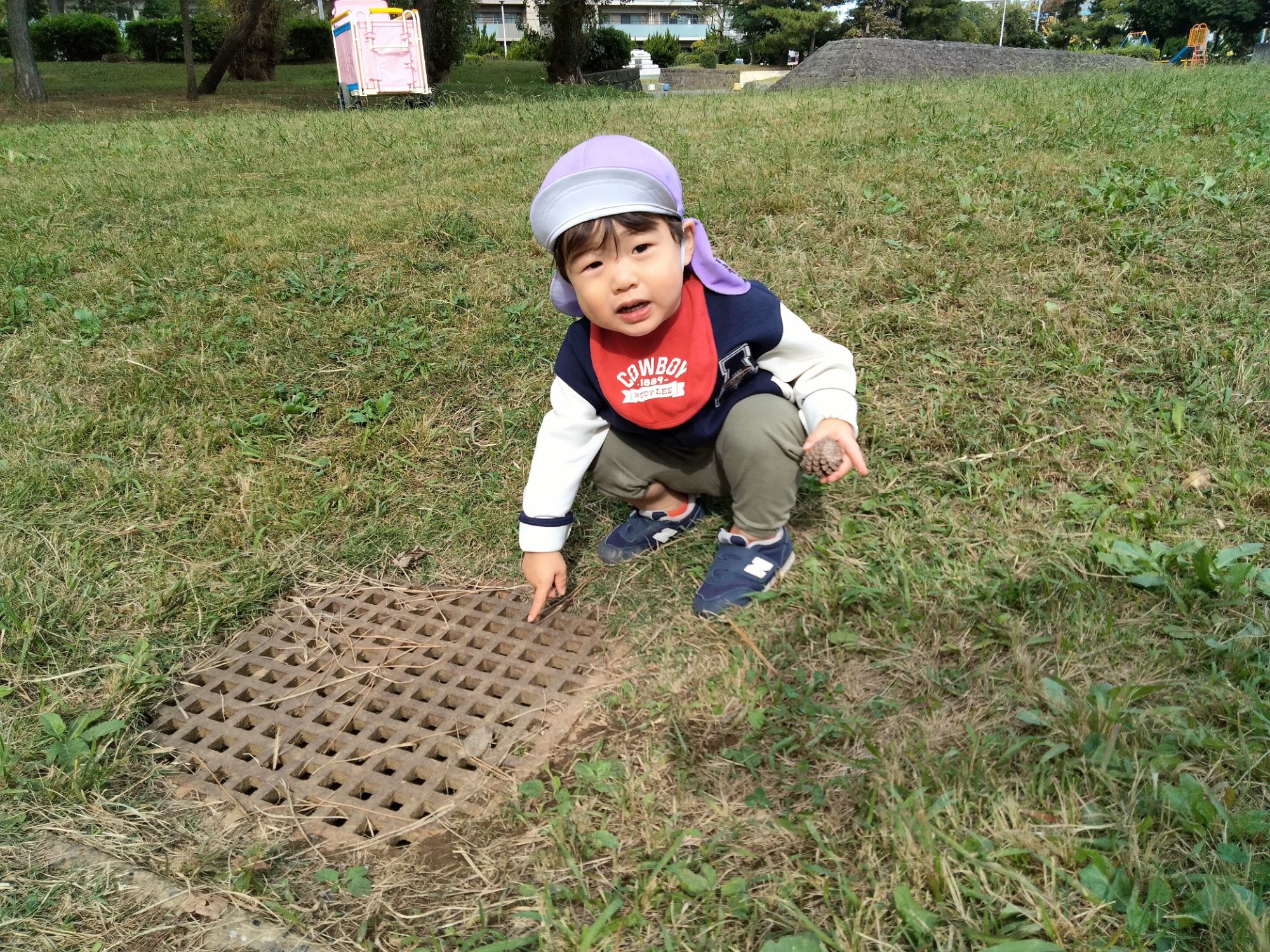 排水溝の中に、枝、どんぐりが落ちていて、「枝とー、どんぐりとー、落ちてるよー」と教えてくれる姿も見られました😊