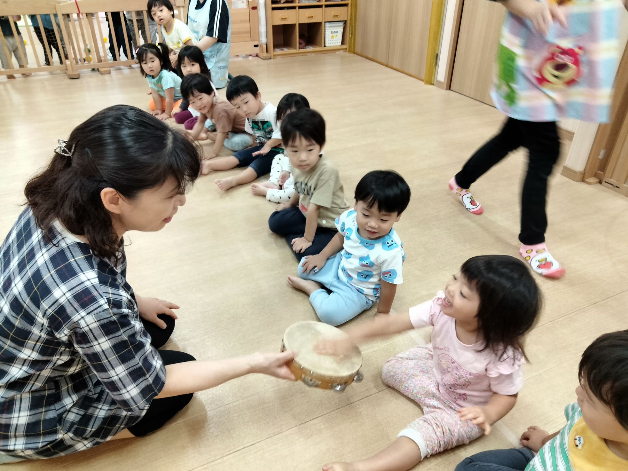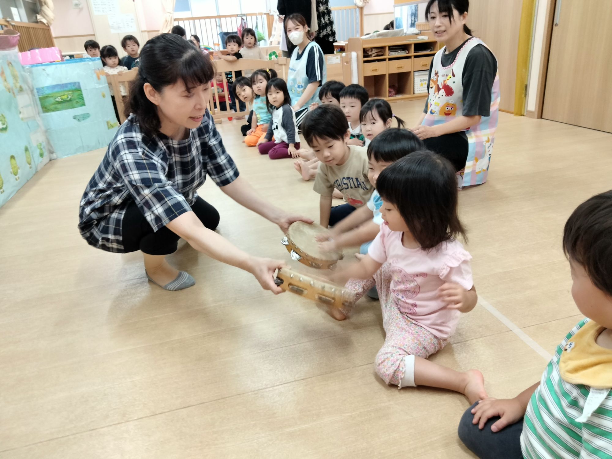 いろいろな方法でタンバリンを使ったリトミックを楽しみました!