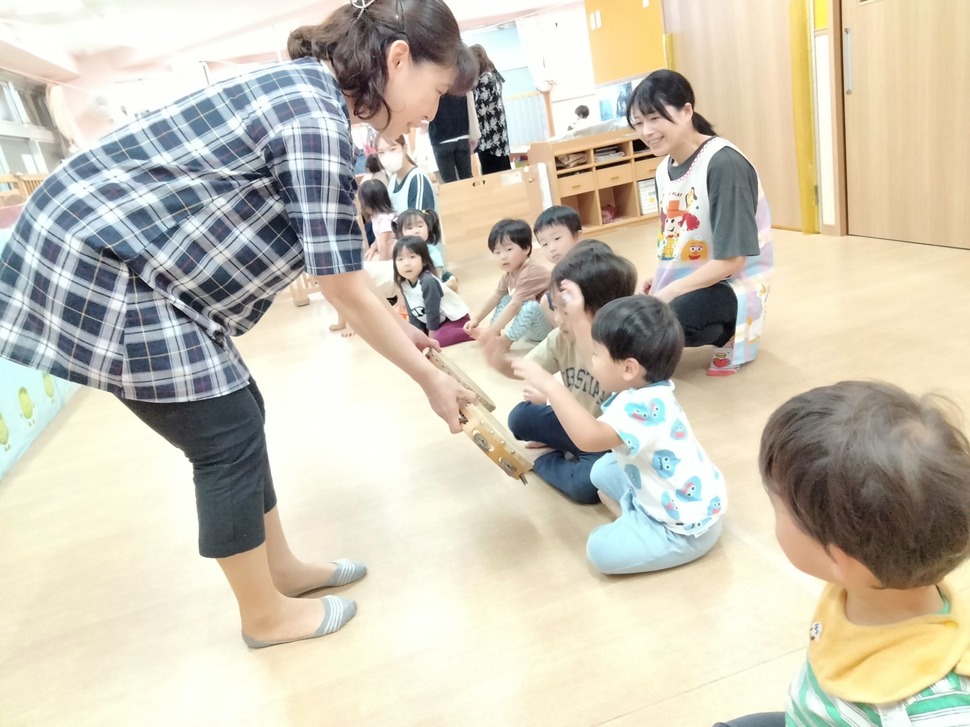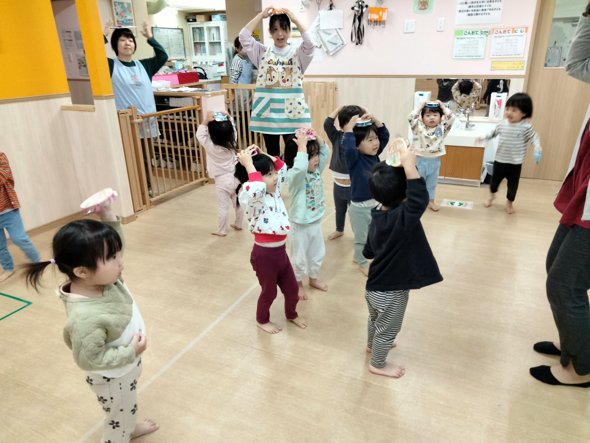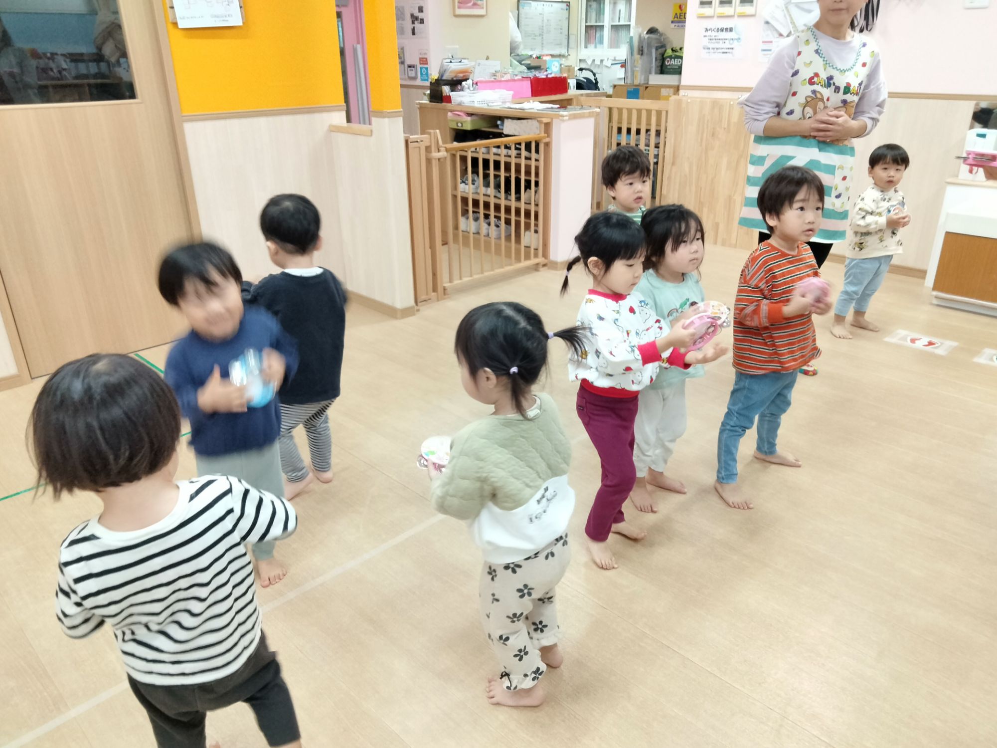 最初は音を鳴らすことを楽しんでいた子どもたち。回数を重ねるうちに音楽のリズムに合わせて音を鳴らすことを楽しむ姿が増えてきました😊
