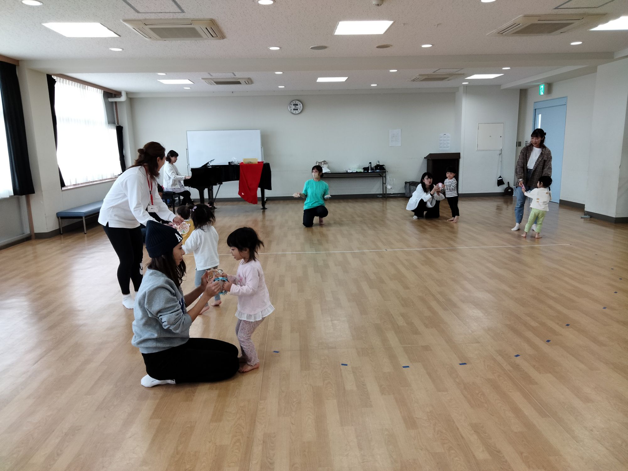 内容はいつものリトミックですが、環境はいつもと違う…そんな場面に最初は戸惑う姿を見せていた子ども達も少しずつ雰囲気に慣れ、いつも以上に素敵な笑顔で活動している姿が見られました!大好きなお家の方と経験することが出来たこと、、いつも行っている動きを自信もって行えたことで、お家の方に褒めてもらえたこと🤗子ども達にとっては、とっても大切な経験に!