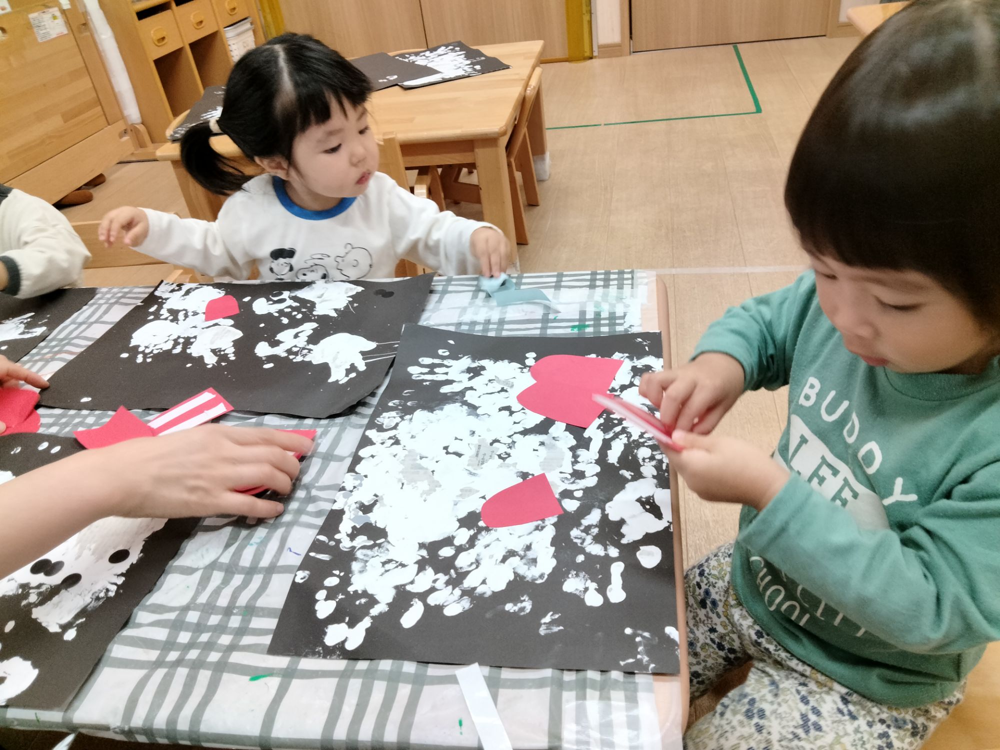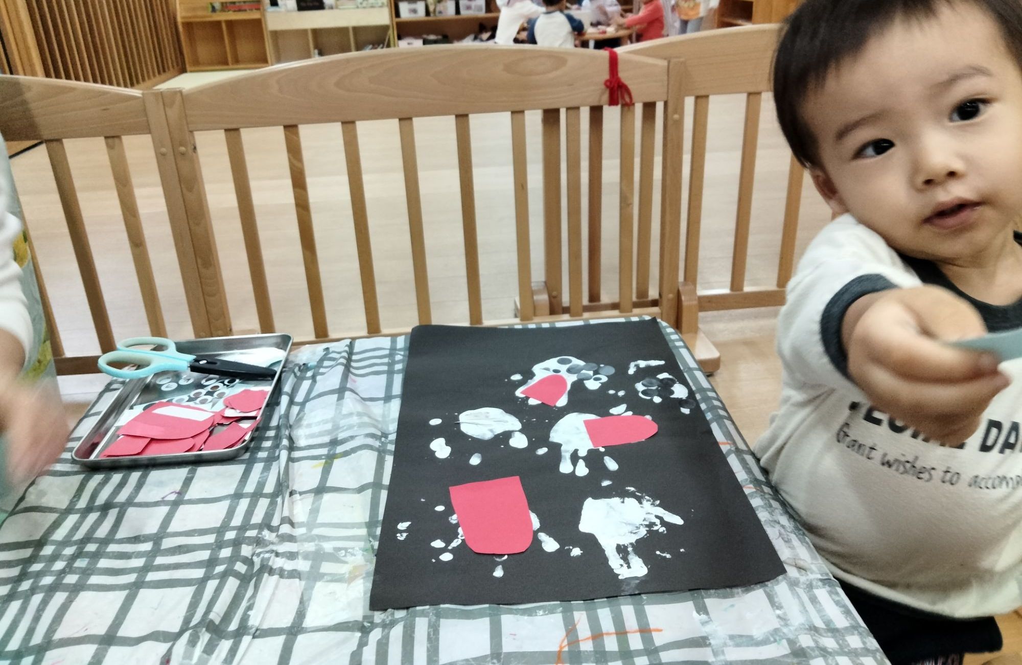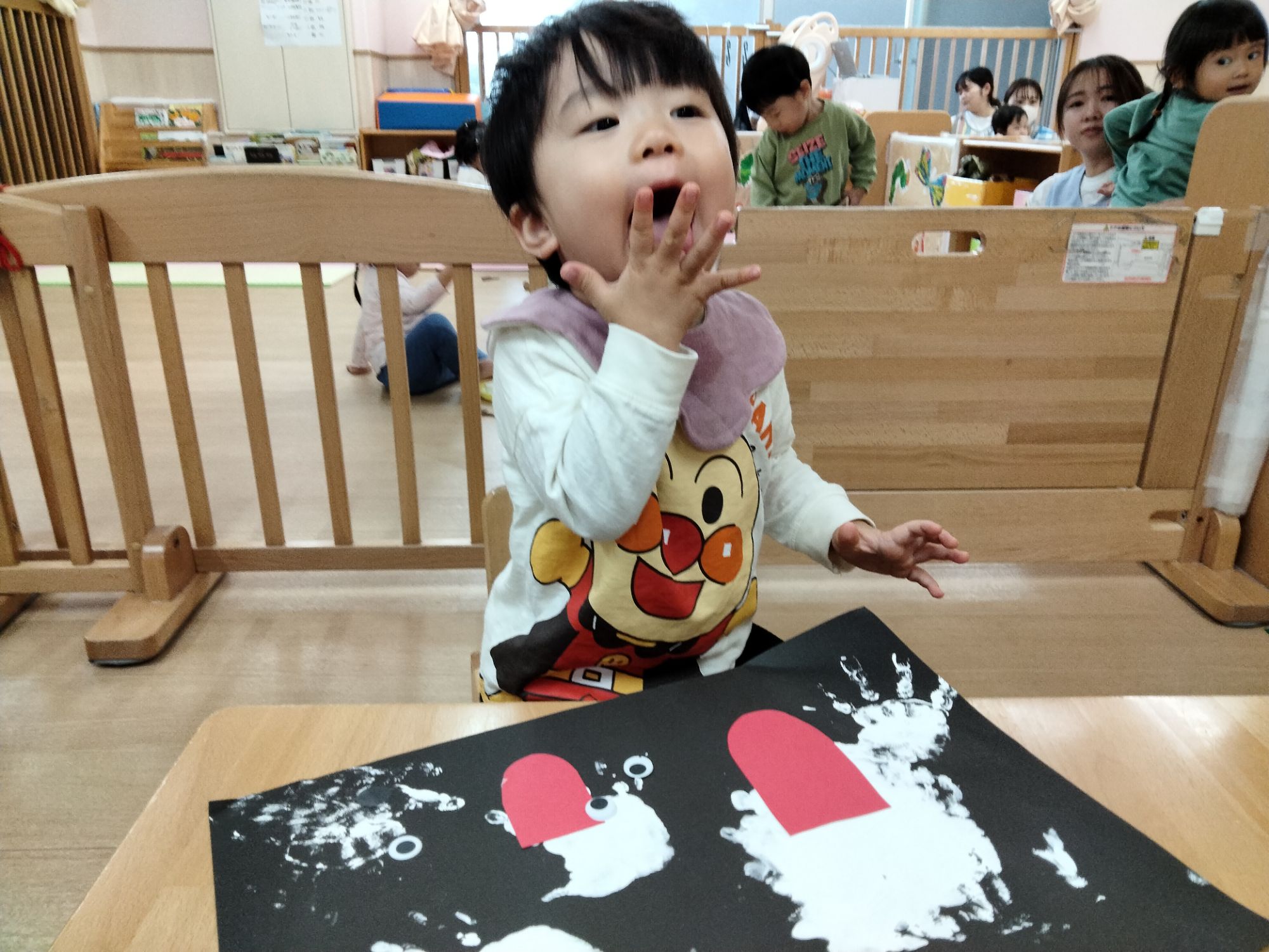 前回、手形スタンプで黒い画用紙にぺったんしたひかり組さん⋯✨️