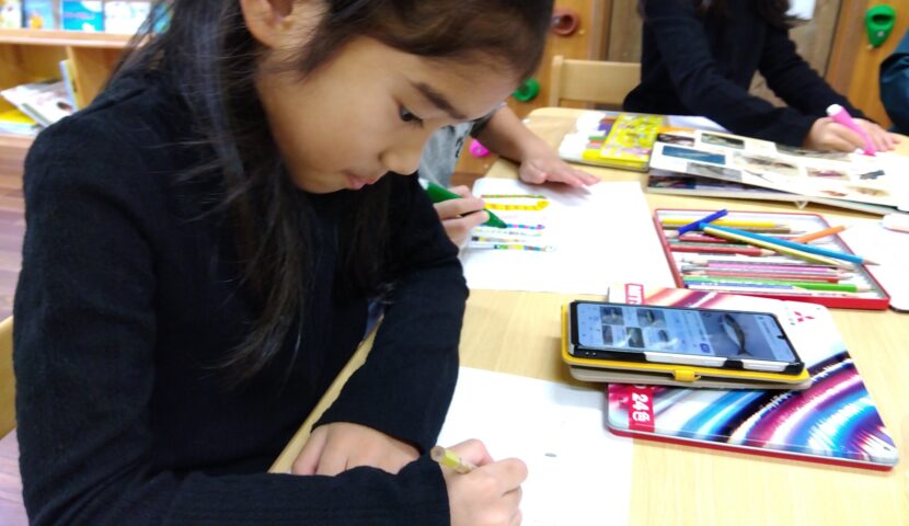 今回は「こ」のつく海の生き物を探す。というように文字から図鑑やタブレットを使ってお魚を探して描きました🐟️