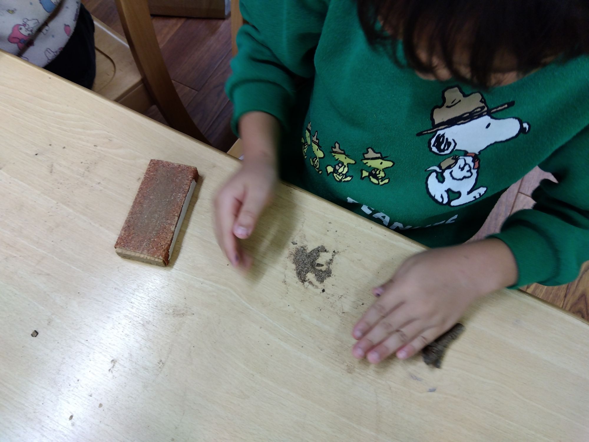 ヤスリをかけてでた粉で形を作って『飛行機✈』見立てています。サンドアートですね🖼️