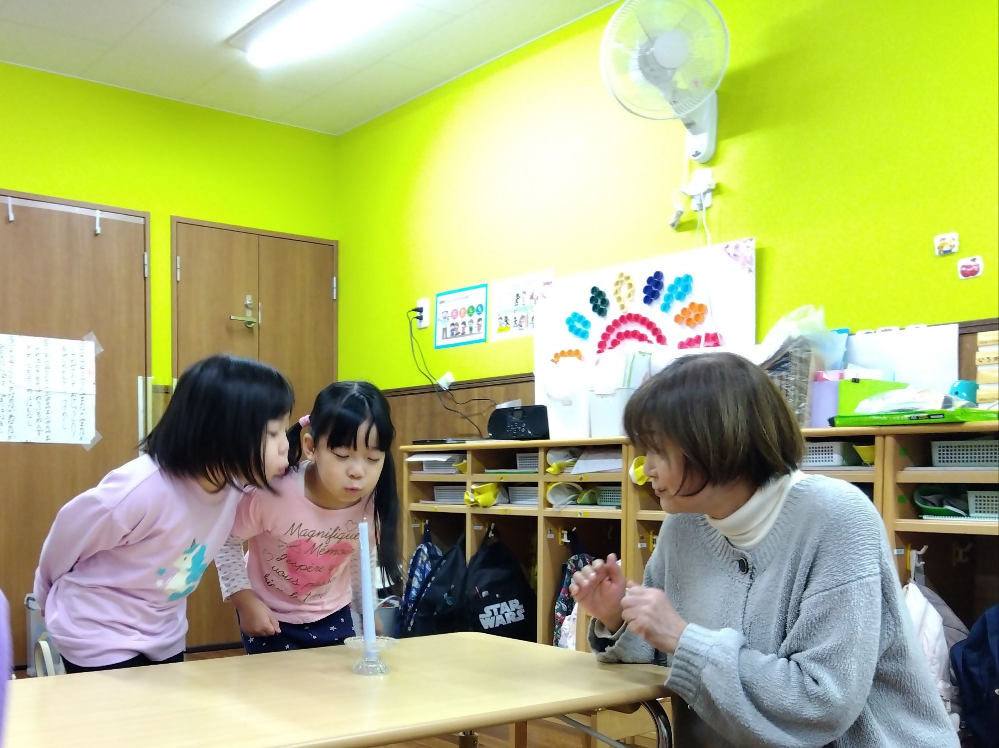 わらべうたで選ばれた2名のお友達が前に出て吹き消してくれました✨