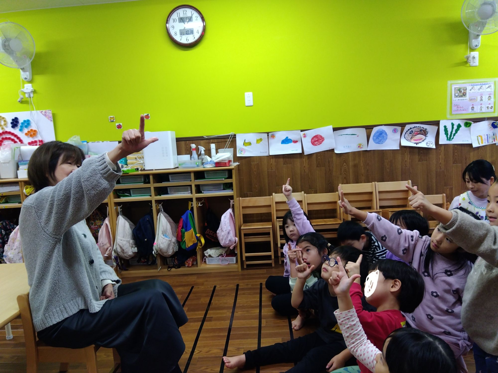 指の動き、形、何の指を出すのか見てみんな必死に真似てました!