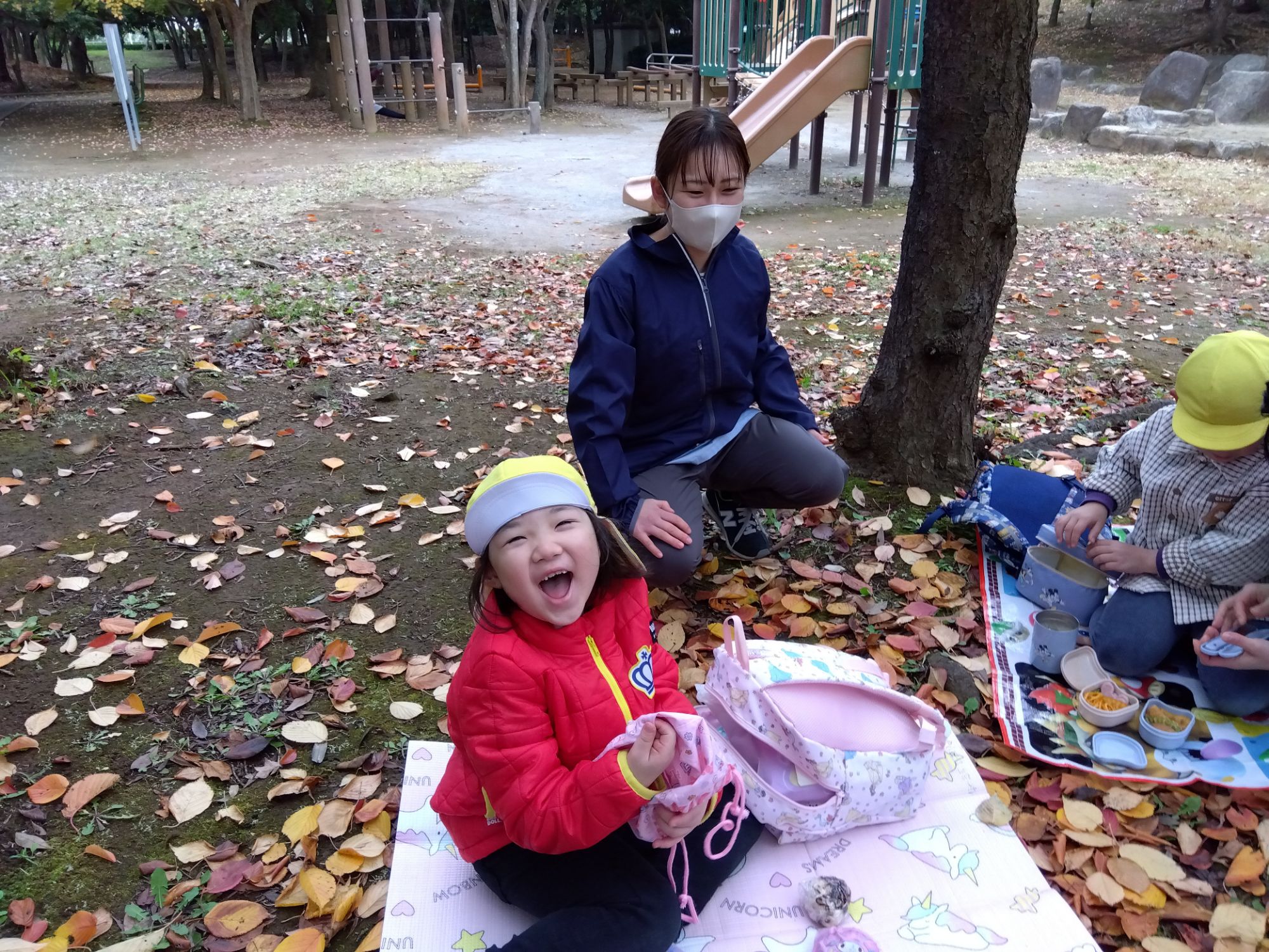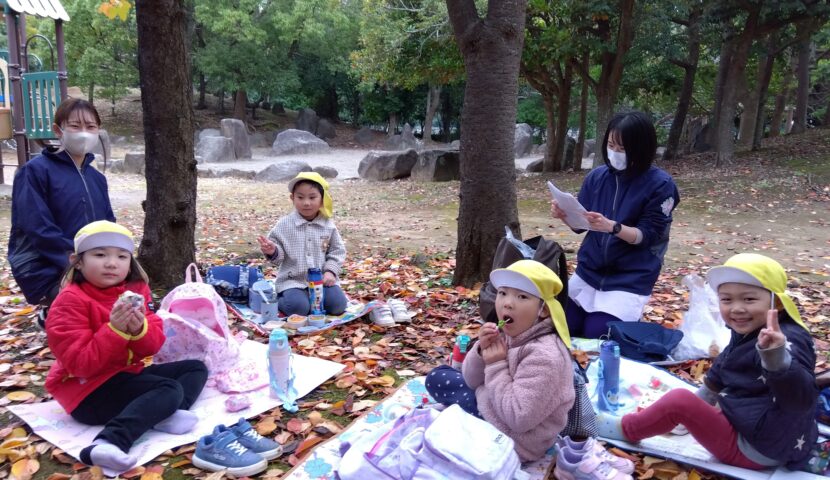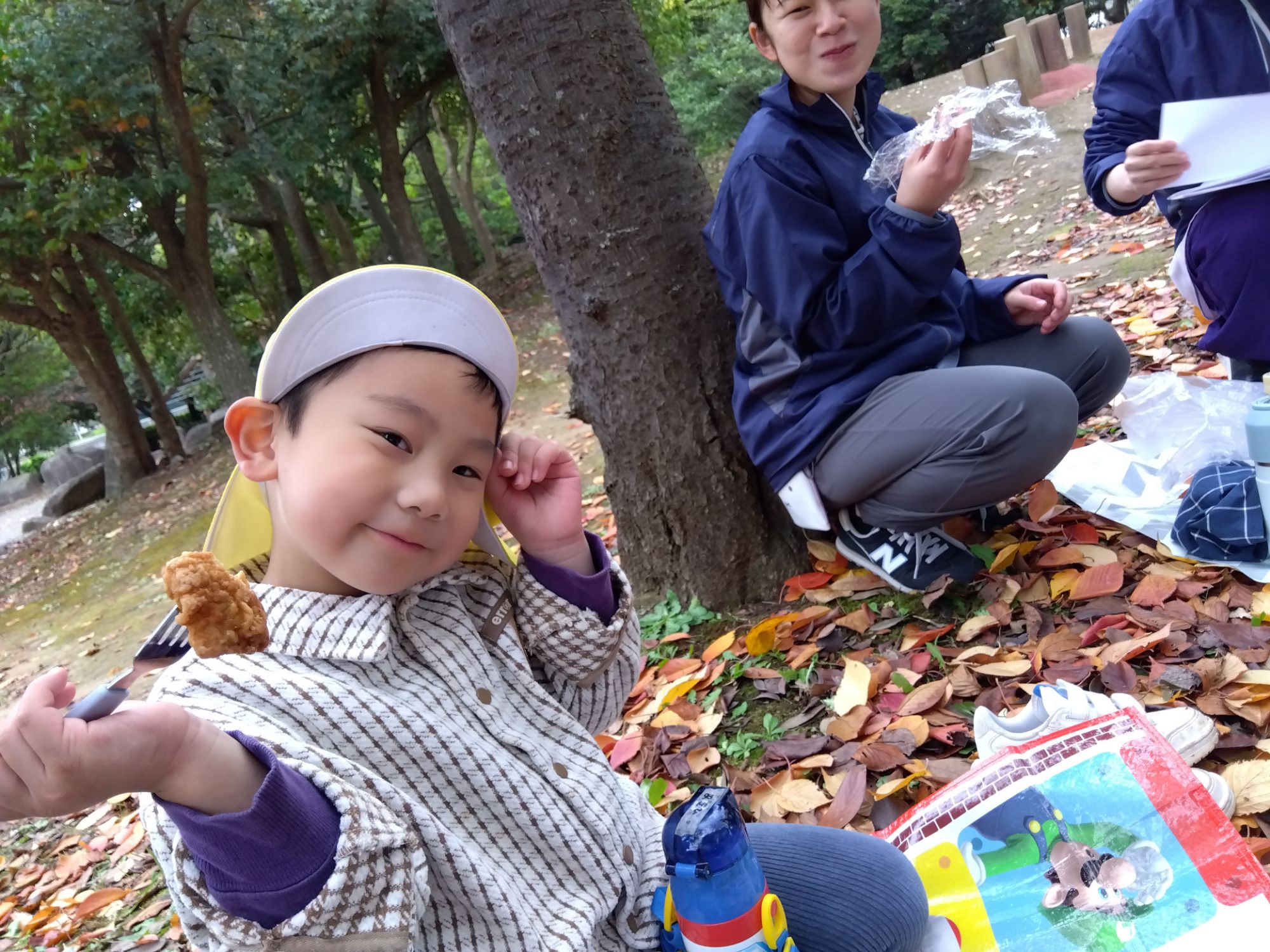 様々な葉っぱを見つけては、目で見たまま…思ったこと、気がついた事を言葉にして表現!秋の自然にたっぷり触れながら、お友達や先生達との言葉での伝え合いも楽しむ事が出来ました!