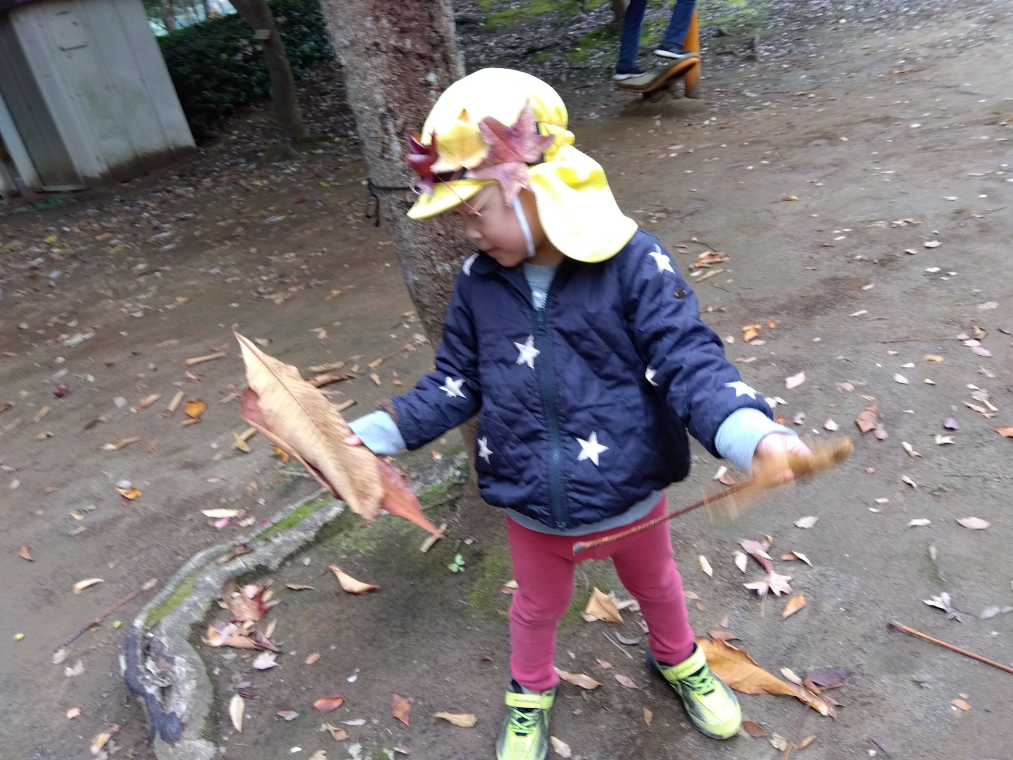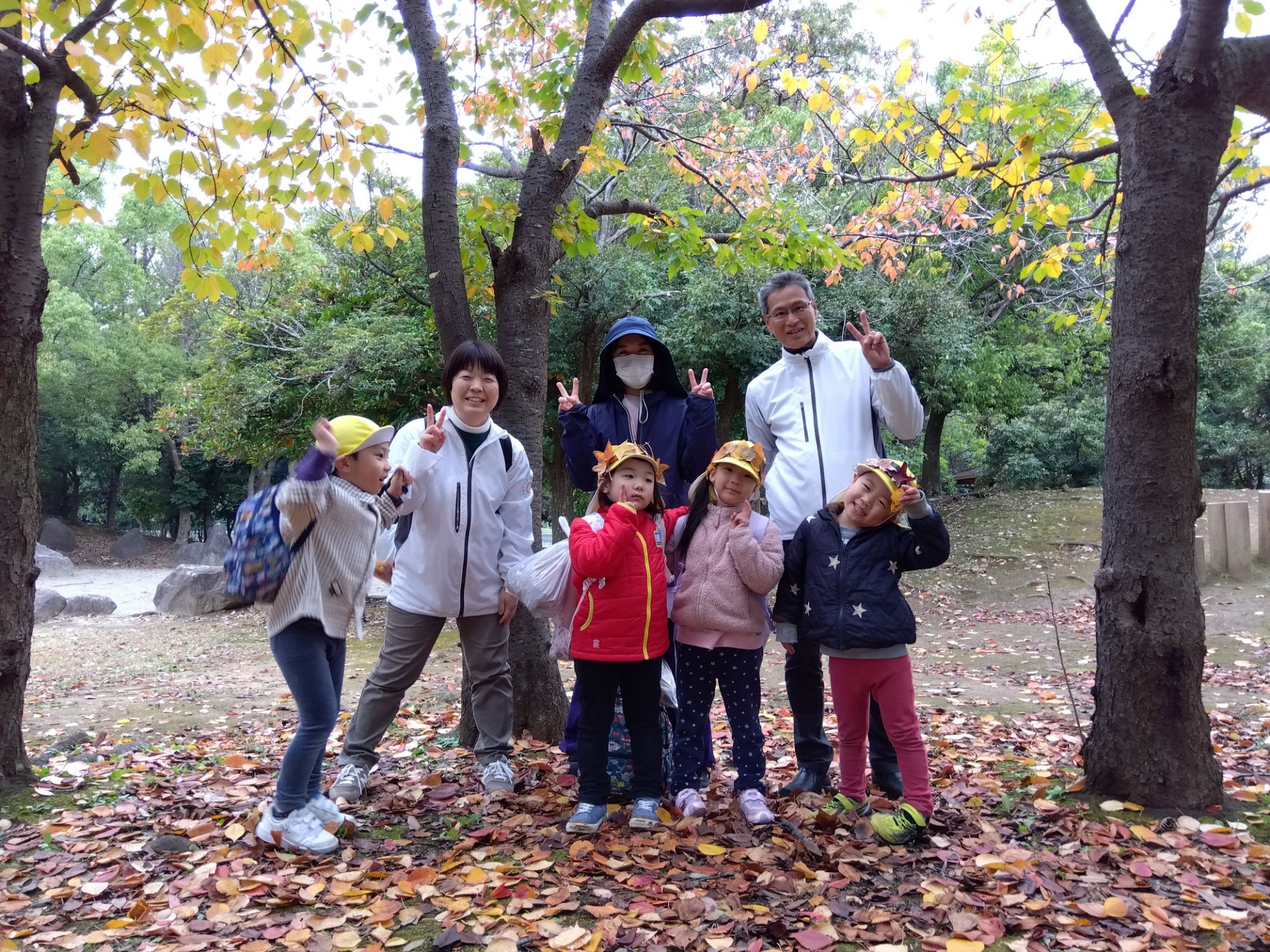 秋ならではの風景を楽しみながら、公園内の落ち葉を集めて “冠” を作りました!