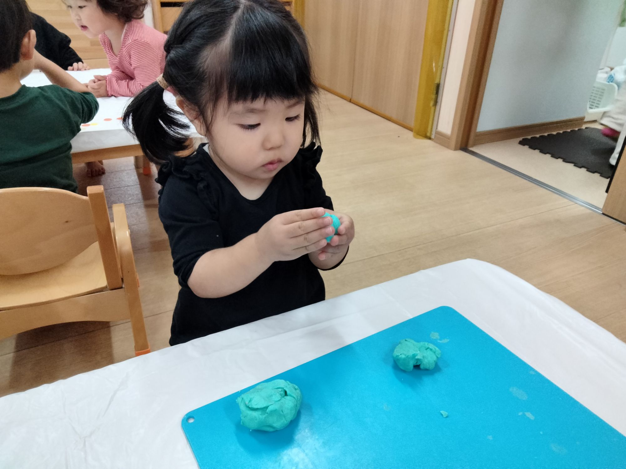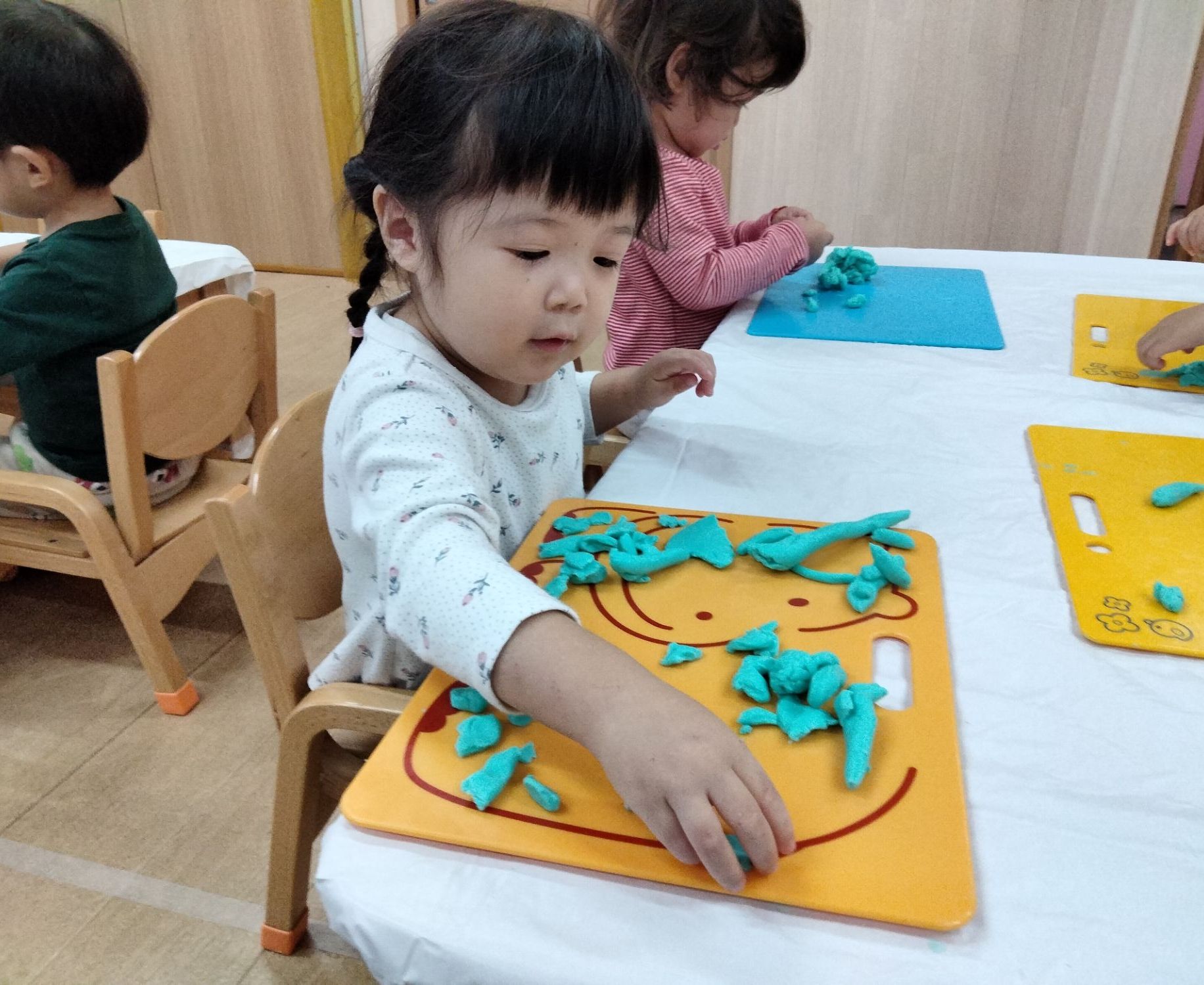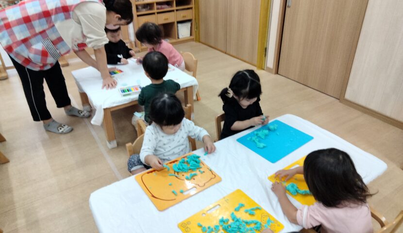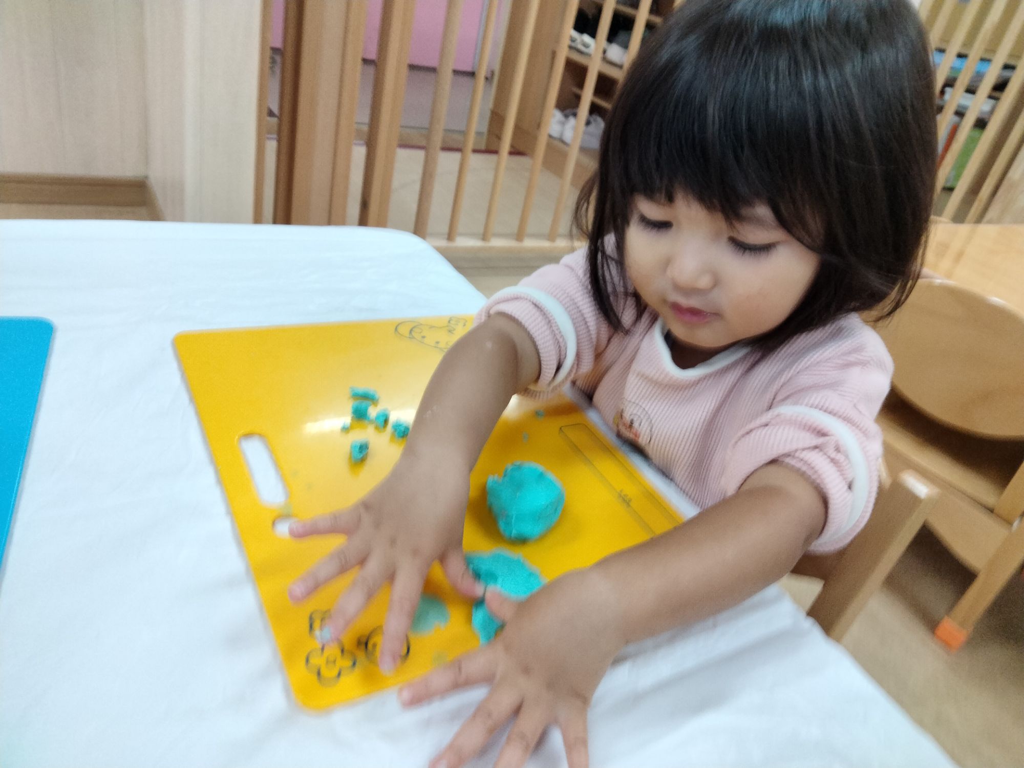 柔らかい粘土の感触を通して、手指の発達だけでなく、感じたことを表現する力や友だちとのやりとりも育っています。これからも、いろいろな素材に触れながら、感性や表現の芽を大切にしていきたいと思います👍🏻