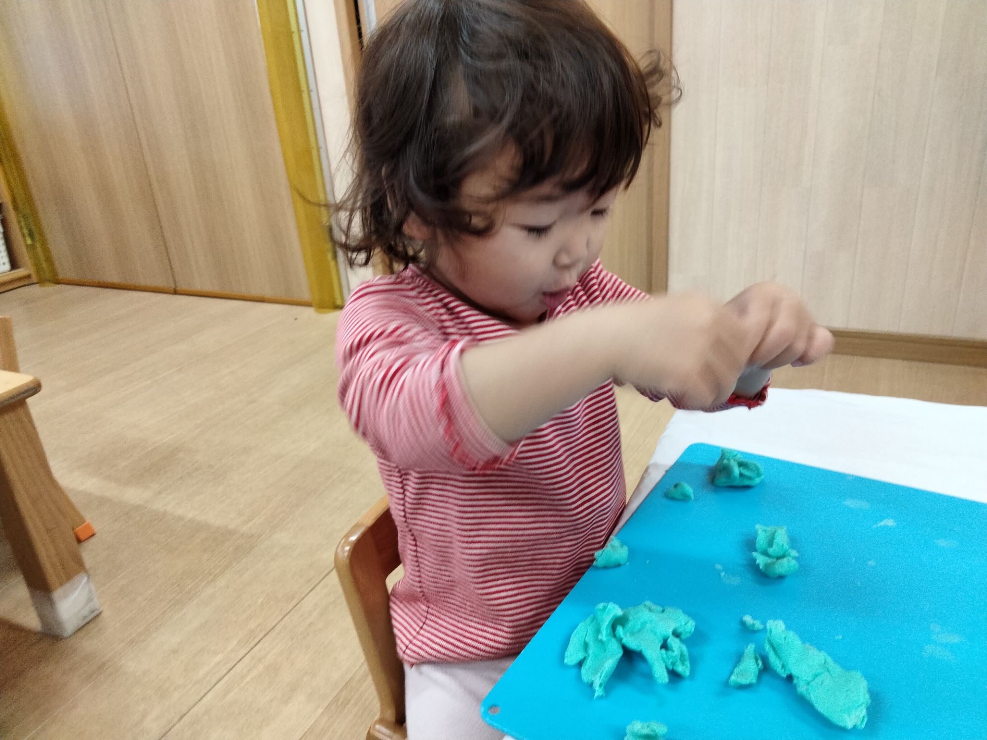 遊びを重ねるうちに、てのひらや指先の動きが少しずつ器用になり、集中して取り組む時間も長くなってきています。