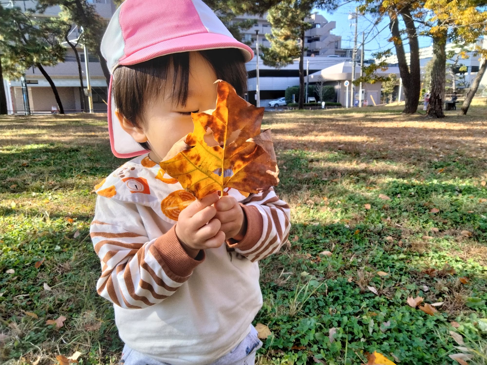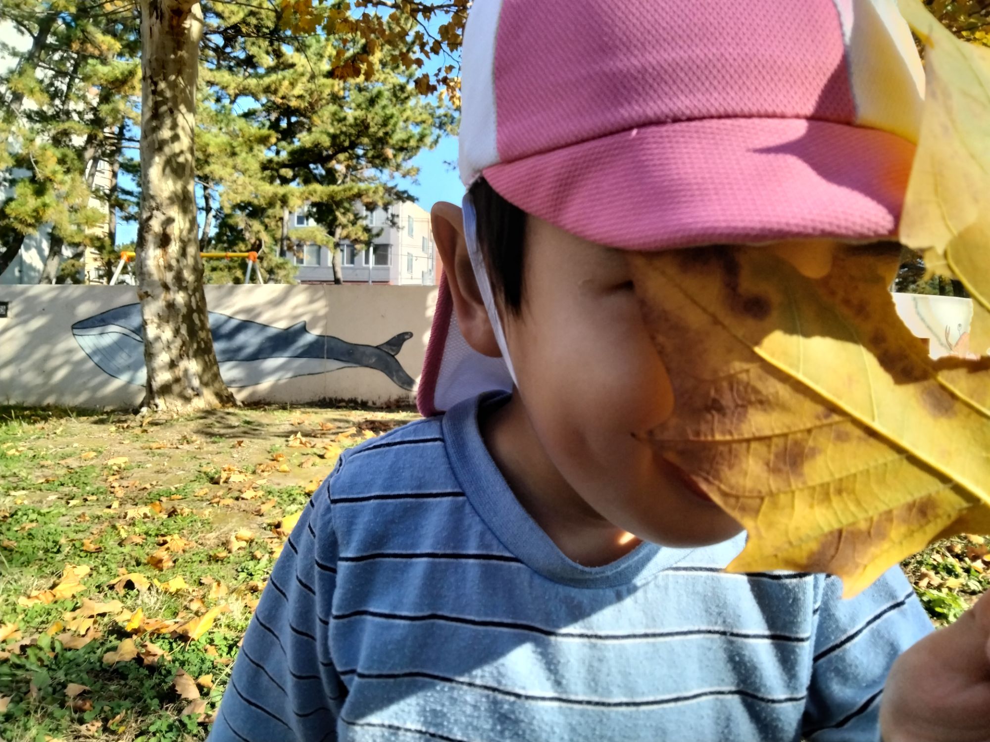 葉っぱに穴を開けて「葉っぱおばけ〜👻」