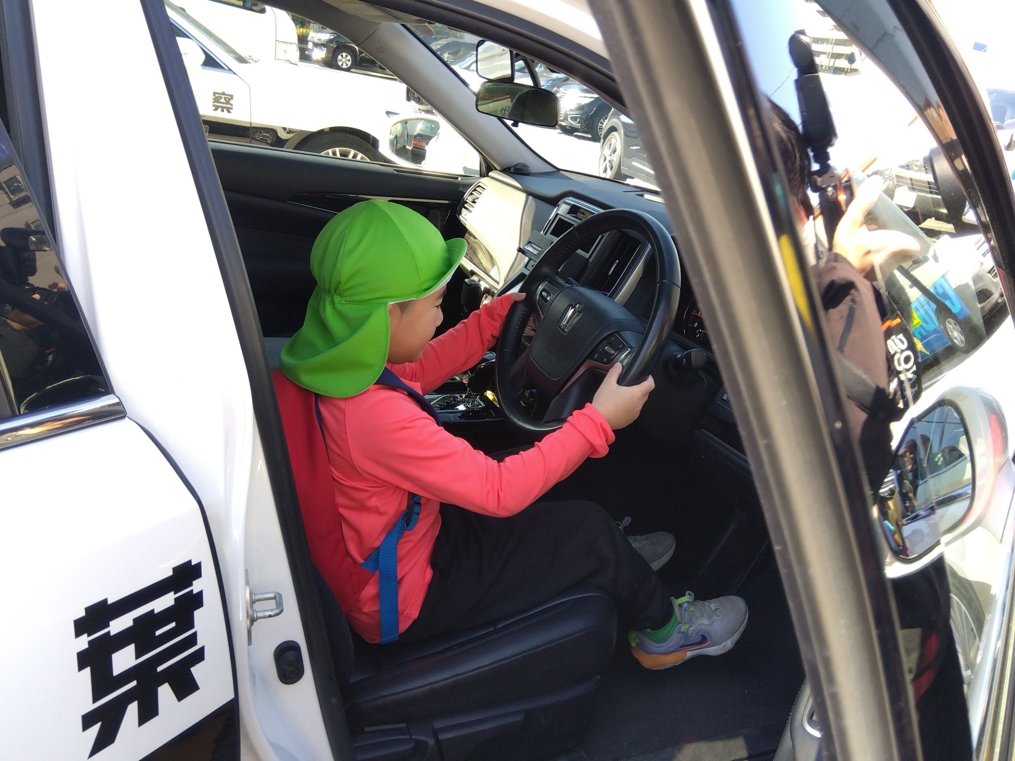 パトカーの後ろの座席にもお友達と一緒に乗車!「大人はあんまり乗れないけれど、こどもだけだとたくさん乗れるね」と嬉しそうに話していた幼児クラスのお友達!後部座席はギューギューでした🤣