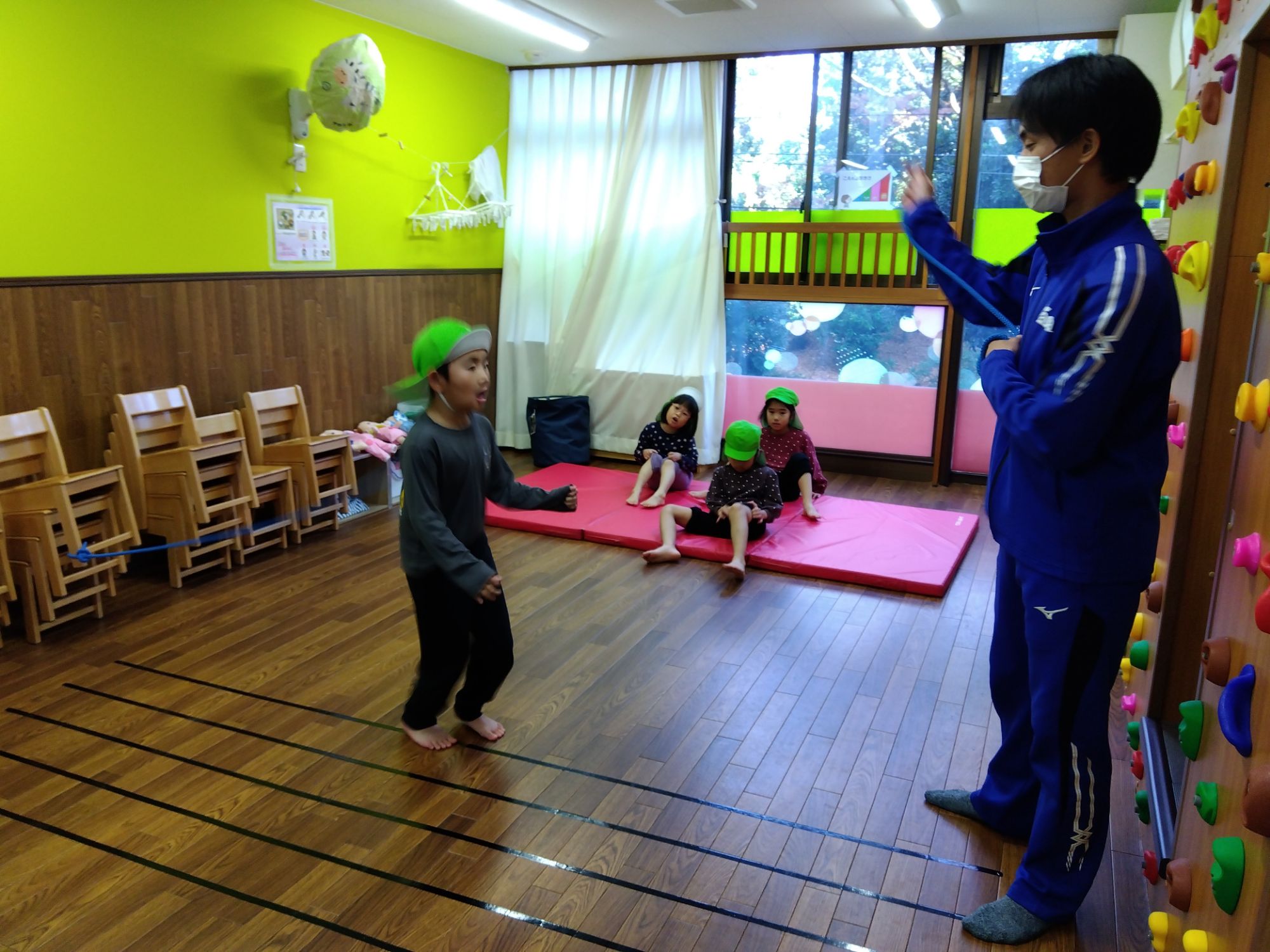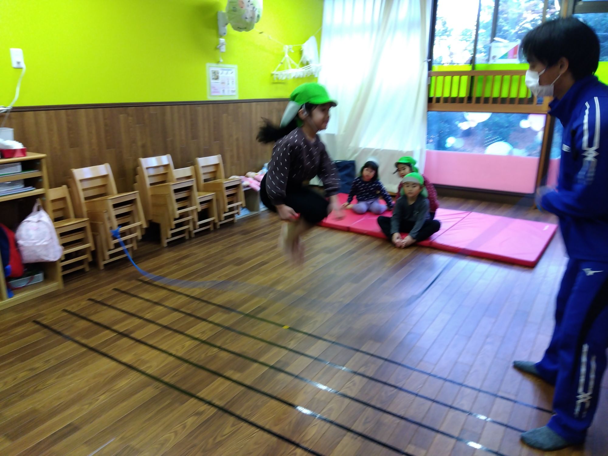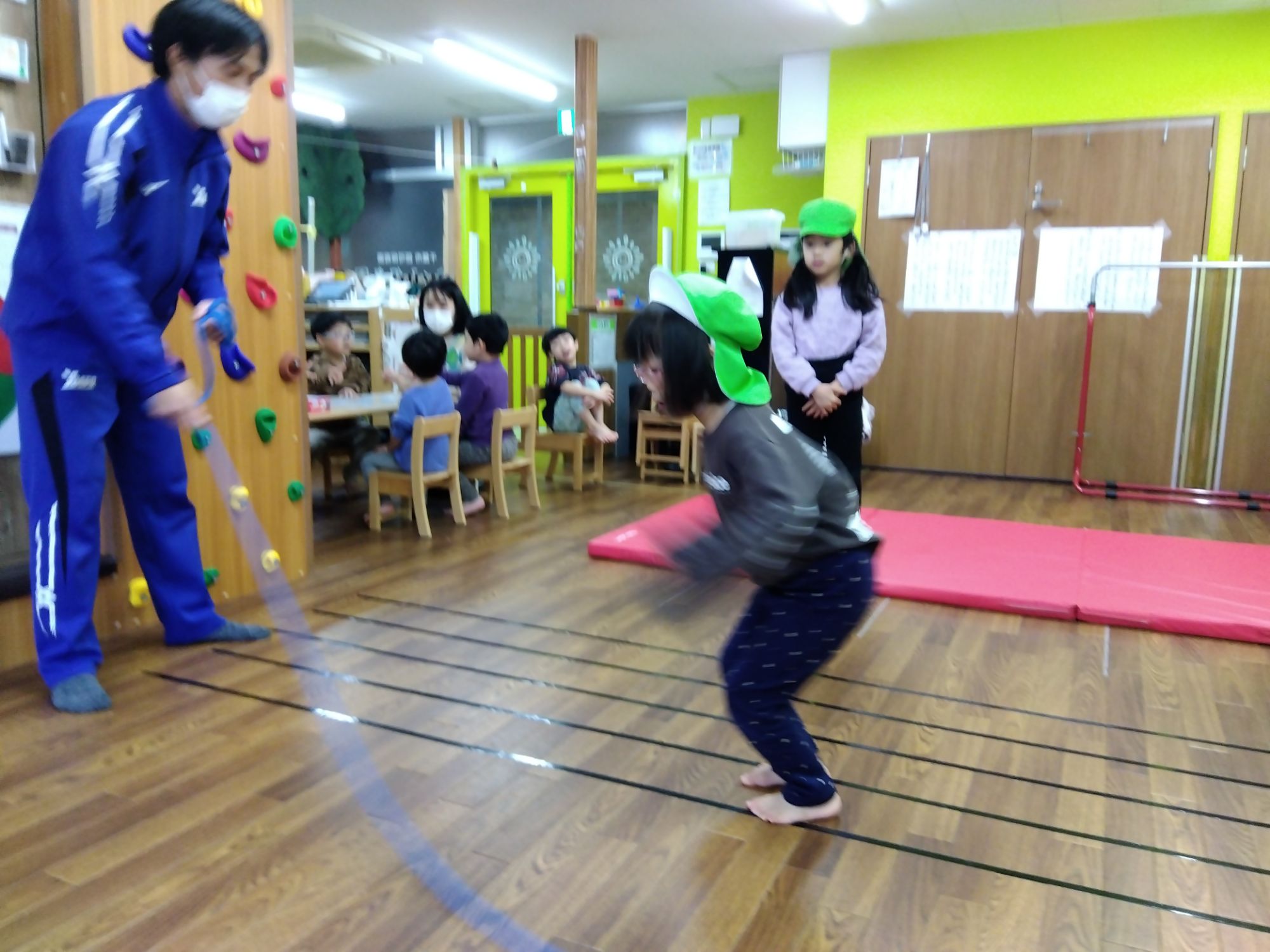 リトミックで培ってきているリズム感がしっかり生かされてており、みんな上手にたくさん跳ぶことができました!とてもかっこよかったです。