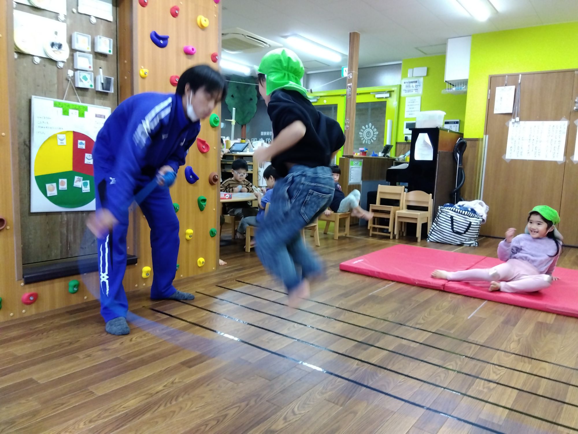みらい組さんは縄を回しタイミングを合わせて跳びます🦘